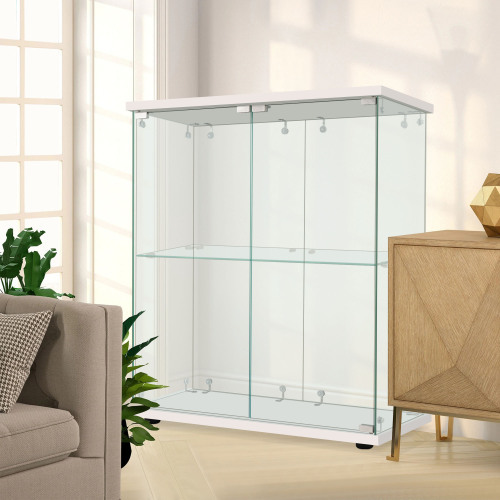 コレクションケース 両扉タイプ 大型 ワイドタイプ ガラスディスプレイキャビネット サイズ:幅80.5×奥行36.5×高さ86cm ホワイト