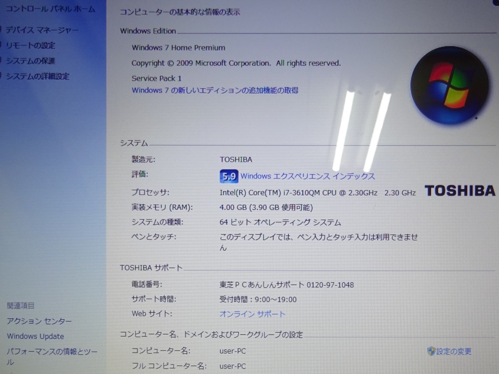 (Windows 7 Home Premiumプロダクトキーは裏面に貼付してあります)