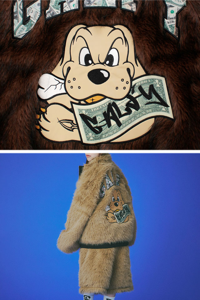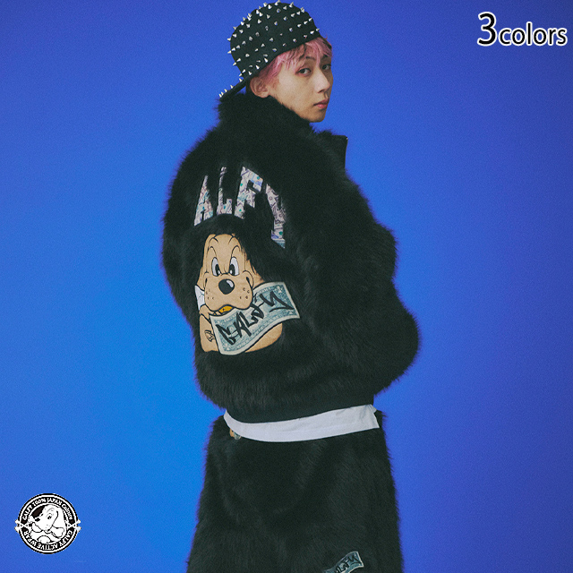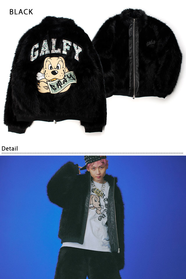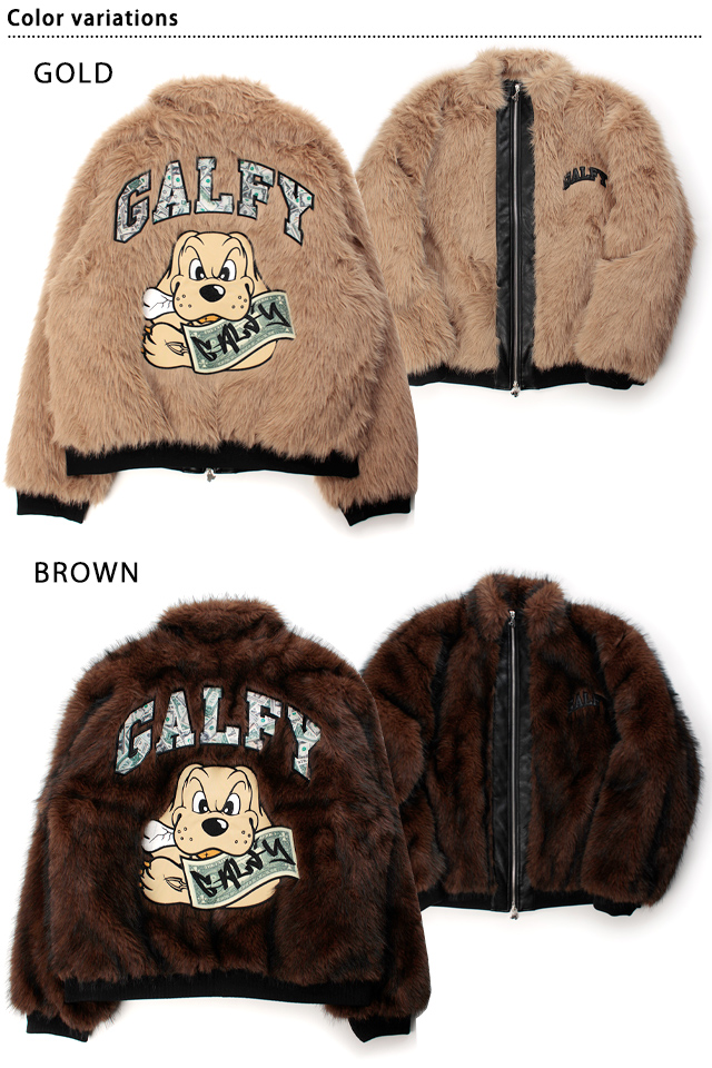 ストリートエッセンスを柔軟に捉え、都会的かつアクティブな提案を展開していく「GALFY」さんから「お金大好きファーブルゾン(153000)」のご紹介です。 90年代にアウトローから絶大な人気を博し、一大ブームを巻き起こした犬のキャラクターが特徴の 「GALFY」 が5年間の沈黙を破り、Revival&Rebrandを経て現在に復活しました! 世の中、金!! 毛足の長いフェイクファーを採用した、見た目も着心地もぽかぽかのブルゾンです。 フロントはジップアップ仕様。 持ち手にはGALFYのチャームが取り付けられています。 裏地にはキルティングが切り替えられており、厚手で寒い季節にぴったりのアウターに仕上がりました。 | ||||||||||||