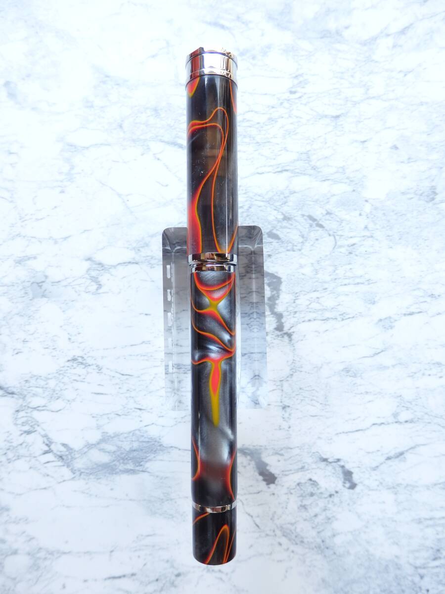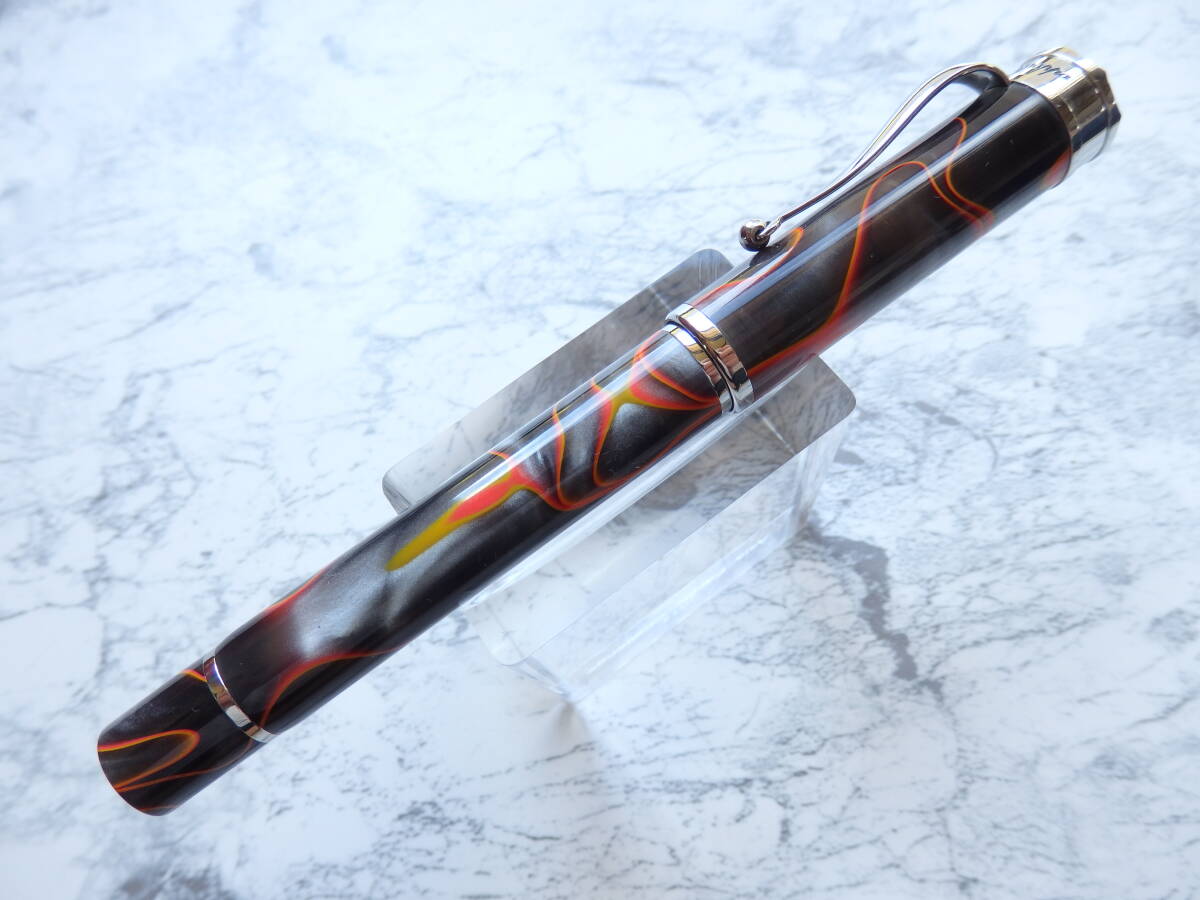 Veneziano Torantorio(日没)ベネツィアの日没をイメージした赤い太陽が沈み漆黒に覆われる昼の残影と夜との狭間をレジンに現わした万年筆です。