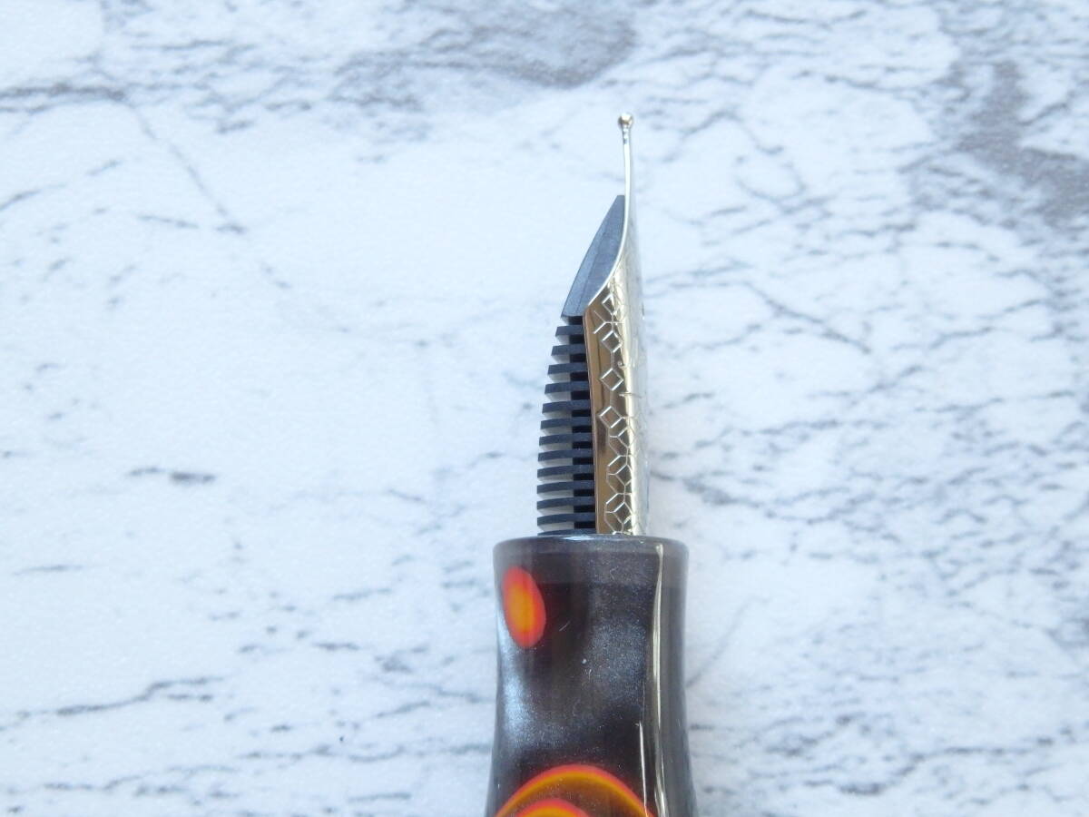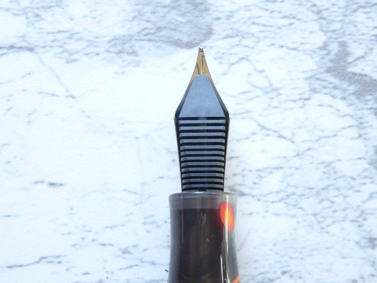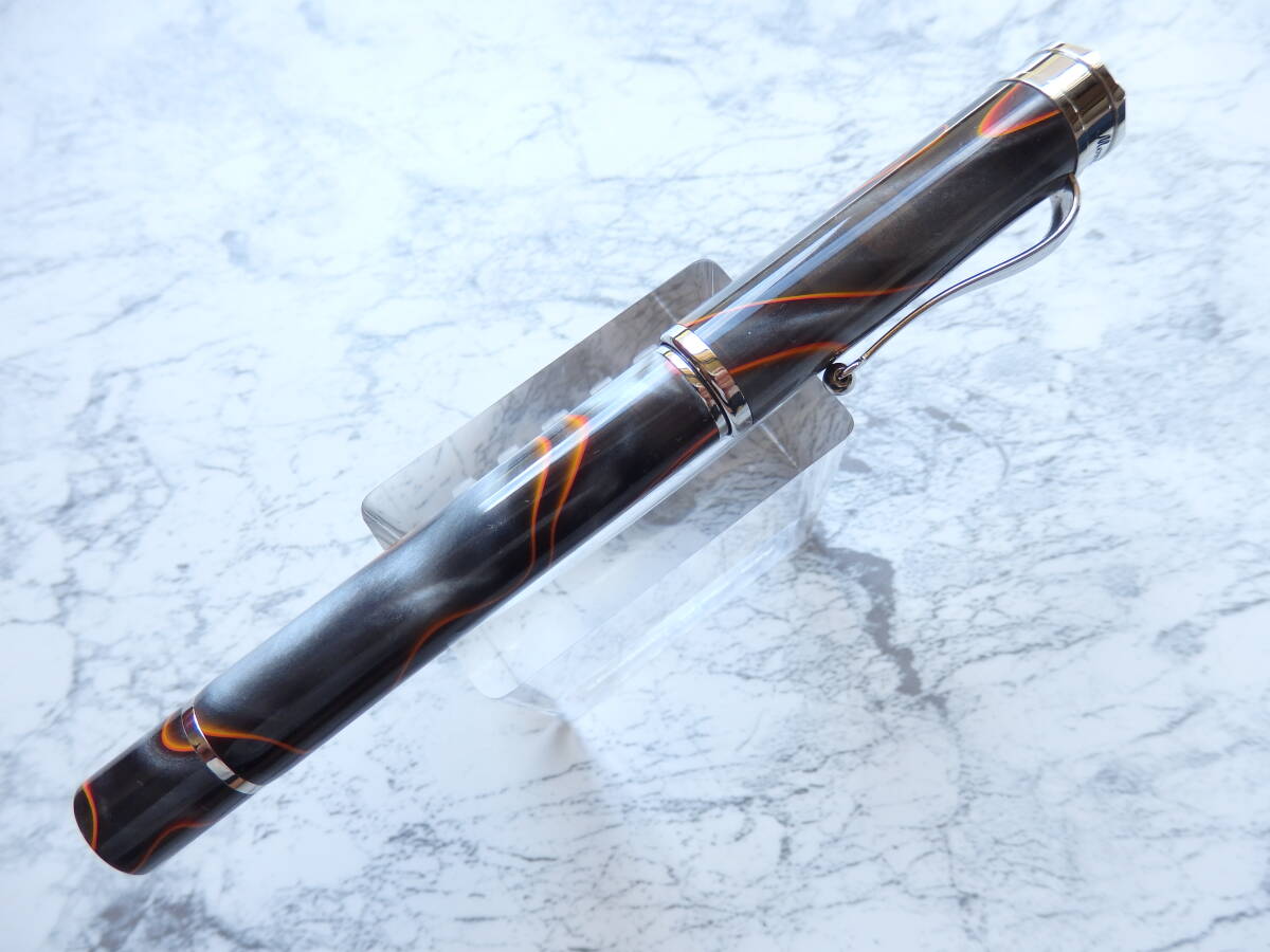 こちらの万年筆も、軸とキャップはいたらイタリアンレジンという非常に魅力的な材料を使い万年筆の魅力度を高め、ペン先はハーモニックスティールニブを使い値段を抑えて、高級感と買い易さを両立させたものです。