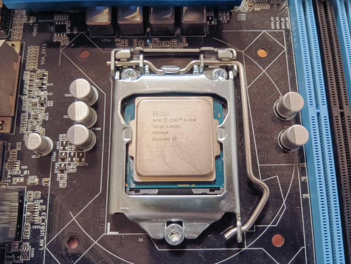 同梱のCPU(Core i5-4690)については、コンデンサ欠けが2か所確認されています。別のマザーボードで起動することは確認済みですが、欠損があるためジャンク扱いといたします
