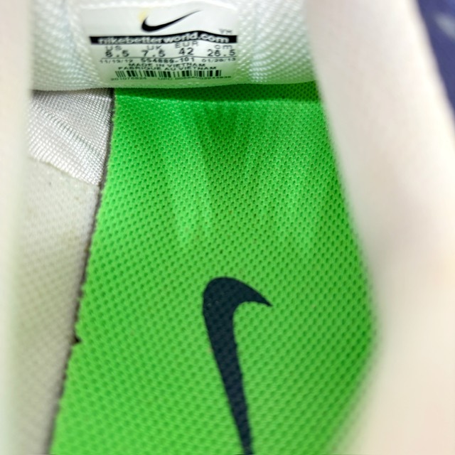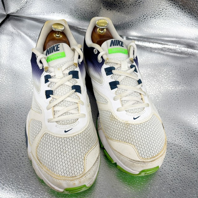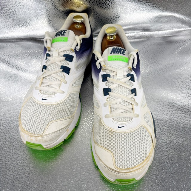ご覧いただき、ありがとうございます。 オシャレで高級感のあるNIKE ナイキのスポーツシューズです。 デザイン性:機能性共に定評のある商品です。 1足押さえてあるとファッションの幅も広がり大活躍するお勧めの商品です。 中古品のため、スレや傷、ヨゴレ等ありますが、その分お値打ちにしております。 詳しい状態は画像でご確認ください。 商品のサイズについて 表記サイズ 26.5cm アウトソール全長 約28.0cm 全幅 約10.0cm (素人採寸) ●状態①「外観」 履きジワ、着用に伴う擦れ、傷がございますが、着用に支障はございません。 くわしくは画像で確認ください。 ●状態②「ソール・インナー」 インソール内ロゴ残っています。 カカトの削れ等、詳しい状態は画像でご確認ください。 ●その他・付属等なし、シューズキーパーは撮影用です。 | |||