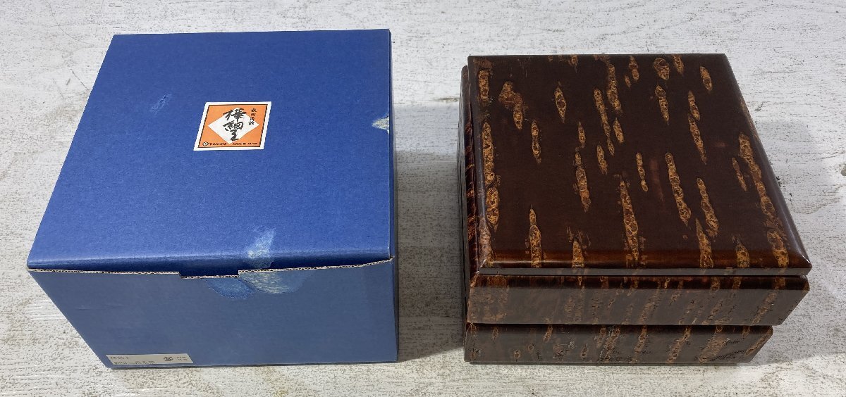 【紫波68-4-1015】【中古/60】未使用 秋田角館 樺細工 胴盛2段重箱