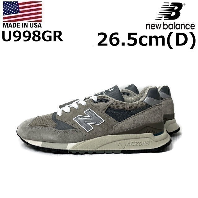 1円~!売切!【正規新品】new balance ニューバランス◆U998GR スニーカー アブゾーブ US購入(Dワイズ/US8.5/26.5cm)グレー 190303-50