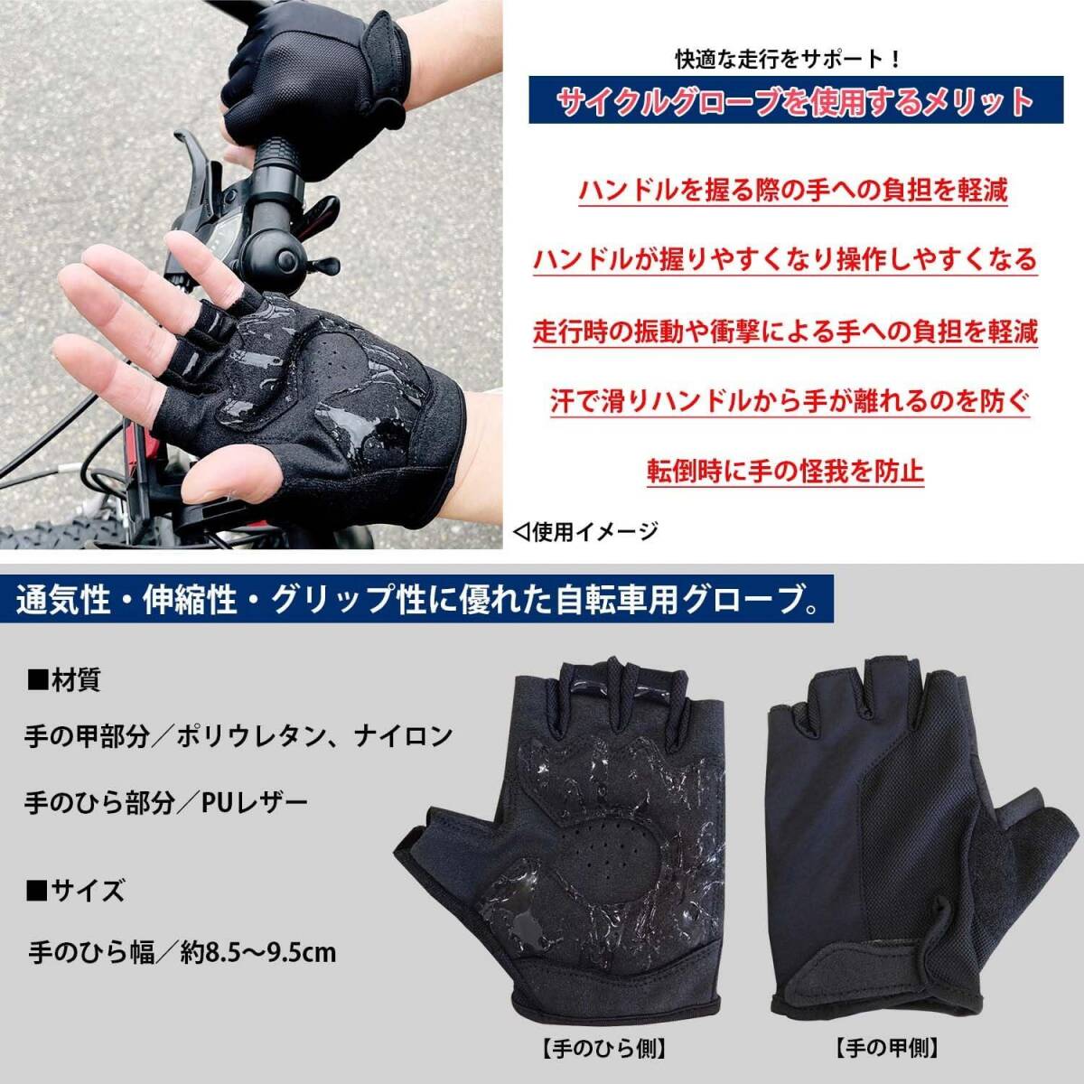 サイクルグローブ ブラック サイズ:手のひら幅/8.5~9.5(男女兼用)