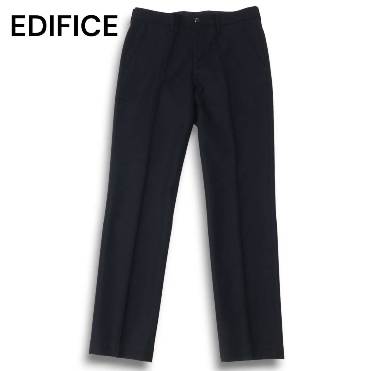 【新品 未使用】 EDIFICE エディフィス 秋冬★ ウール100% サキソニー テーパード スラックス パンツ Sz.44 メンズ ネイビー