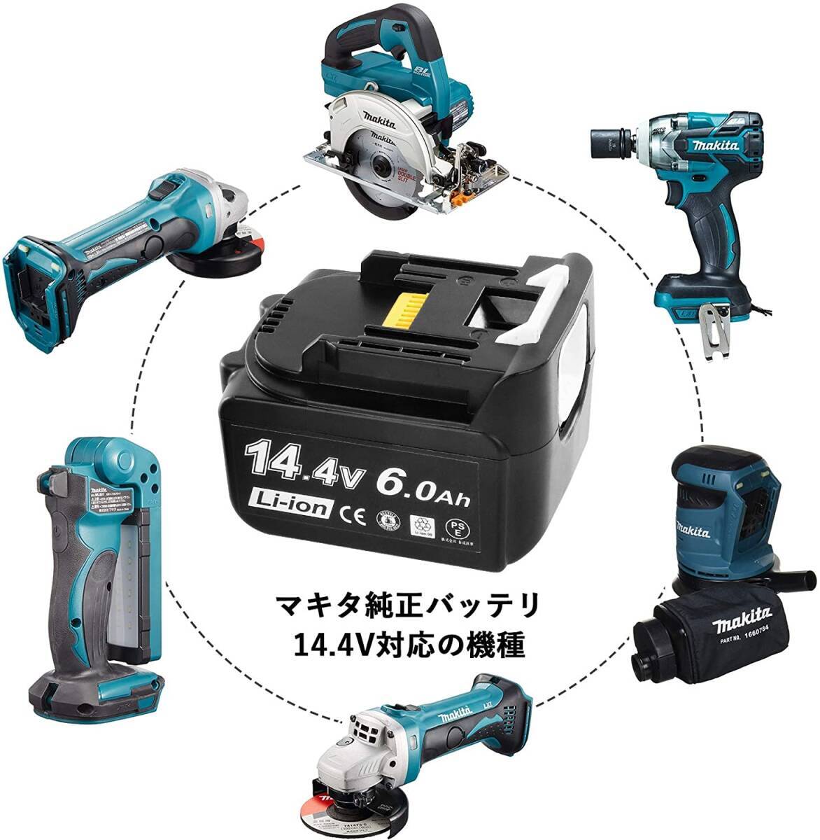 この商品について型番:マキタ14.4vバッテリー マキタbl1460b 6.0Ah マキタ互換バッテリー BL1460 電圧:14.4V 【容量】:6000mAh リチウムイオンバッテリー14.4V 互換バッテリー交換可能バッテリー:マキタBL1415 BL1430 BL1440 BL1450 BL1460 194066-1 194065-3, など 【マキタバッテリーbl1460b】 :高容量ので、長い時間作業。容量アップ、6.0Ahの大容量なので、お作業の際、スピードとパワーが増すし、電動工具が長生きします。充放電:純正と同じようにマキタ充電器にて充電、使用できます急速充電対応 メモリ効果がないため、継ぎ足し充電も可能になりました。過電流、過充電、過放電防止保護機能付!多種多様な機種に対応する。寿命特性、充電時間、連続使用時間が純正品と比べても遜色がないです。交換品で、互換バッテリーは耐久性はよくて、より長く期間に使用できます。お客様のご要望により改良しました、従来の製品よりも小型・軽量化されているため、純正ケースにも収納できます 。