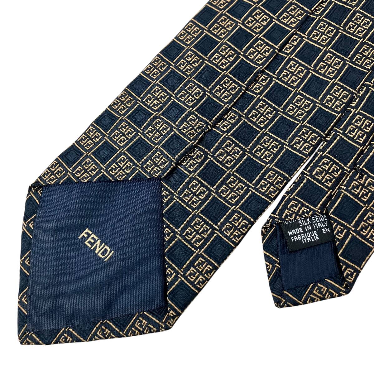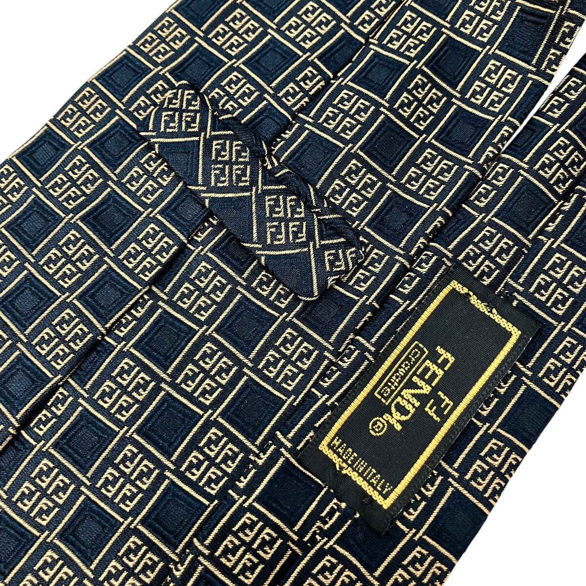 未使用 FENDI フェンディ ロゴ シルクネクタイ FFロゴ ズッカ柄 イタリア製