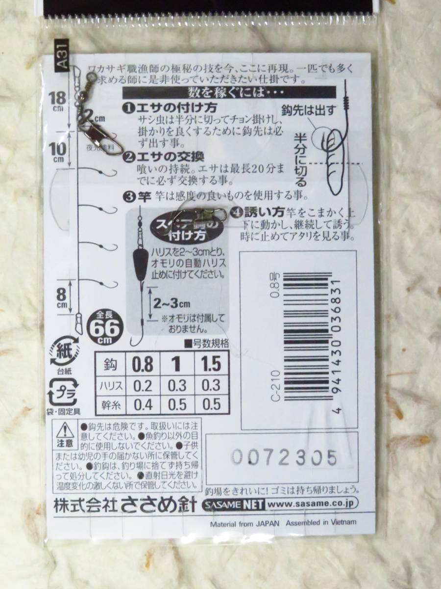 ささめ針 ワカサギ 桧原湖 0.8号×10個セット C-210 秋田狐 5本鈎プラス下1鈎1本付