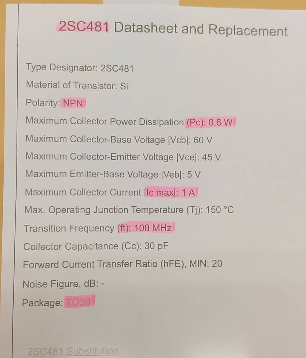 SR-05X 補修用トランジスター 東芝 2SC517(1)  東芝 2SC481(1)  SANYO 2SB4922+1個)