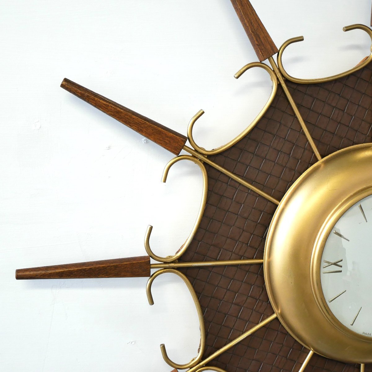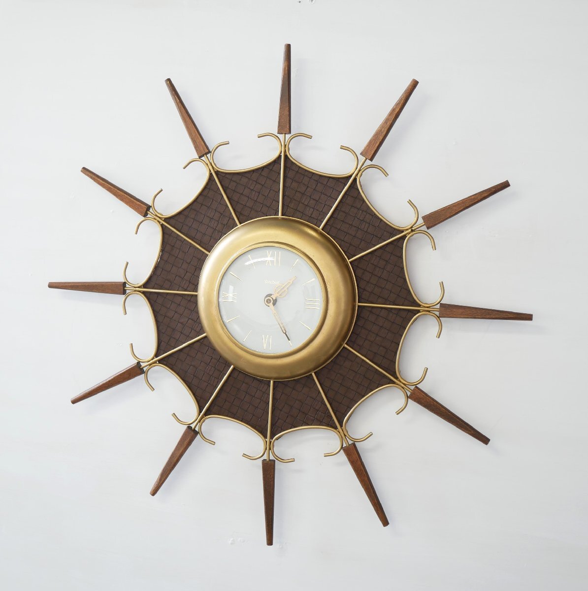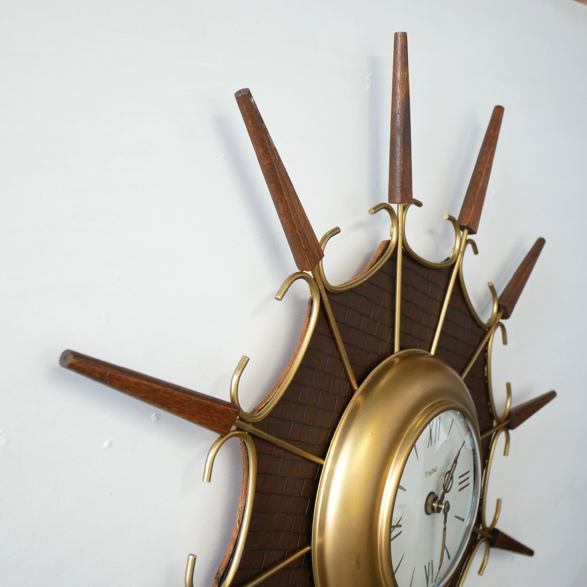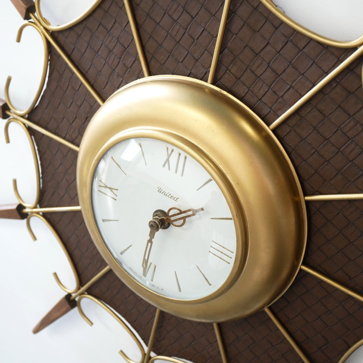 | 商品説明 explanation | United社のサンバーストクロックです。※1950年代から1960年代 太陽のような放射状のデザインが魅力です。 文字盤(メタル) カバー(ガラス) 放射状の飾り(木、メタル、合皮) ミッドセンチュリースタイルのインテリアにいかがでしょうか。 元は電気式でしたが、カチカチと音がしないスイープクオーツの乾電池式ムーブメント(中の機械)に交換していますので、時間はほぼ正確です。 |