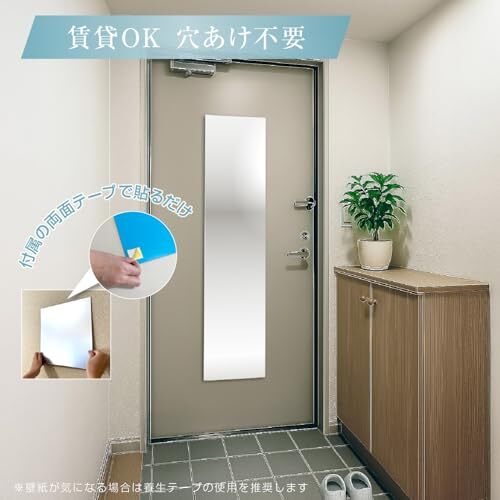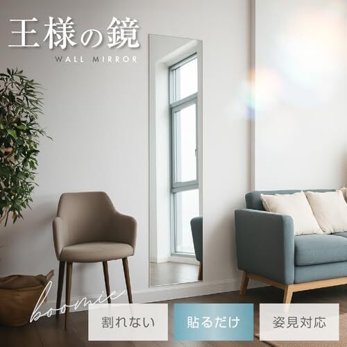 万が一、商品が破損して到着した場合は、お気軽にご連絡ください。 到着時に破損していたミラーについては、返品なしで全額返金または無料交換いたします。 【諦めてませんか?】部屋が狭く、全身鏡を置くスペースが無い…そんな悩みを解決したい一心でBOOMIE「どこでも貼れる割れない鏡」は誕生しました。壁さえあればどこでも設置可能。出かける前に全身をサッとチェックできます。