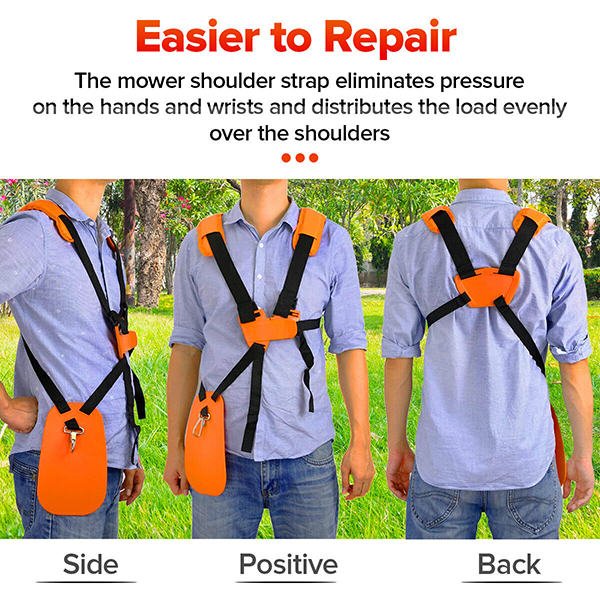 草刈機、刈払機専用の両肩掛けベルトで長時間作業もラクラクになれます。 耐久性:腰当ては硬いナイロン製、耐久性あります。 衝撃緩和の設計:ショルダーパッドには衝撃緩和の肩パッド、安全性と快適性があります。 負担軽減:ダブルスタンダードの肩のデザインは、手と手首から離れてひずみを取り、重い草刈機の重さを肩と後ろに大きく分配します。 調整可能:男性と女性の両方に適した異なるサイズに調整することができます。 |