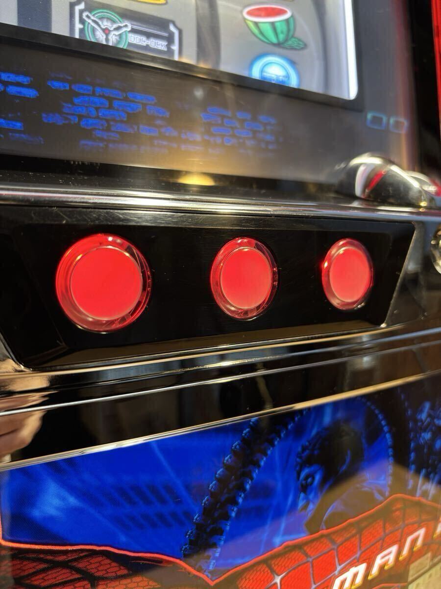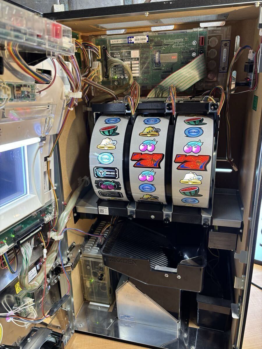 電源ON/OFF、設定変更、ランプ点灯確認、音量調整、BETボタン、レバー、第一〜第三ボタン、リール始動、リールストップ挙動など、通常遊ぶ上で必要な機能に問題