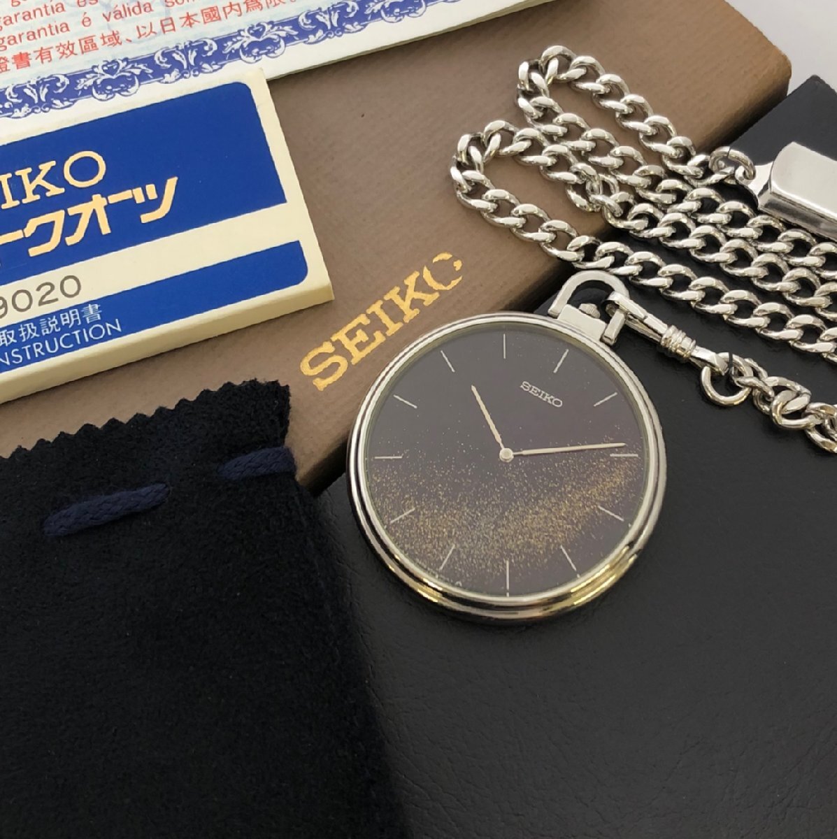 SEIKO/セイコー/POCKET WATCH/ポケットウォッチ/蒔絵/9020-0010/2針/ブラック文字盤/箱・付属品付/クォーツ/懐中時計/ジャンク/S136