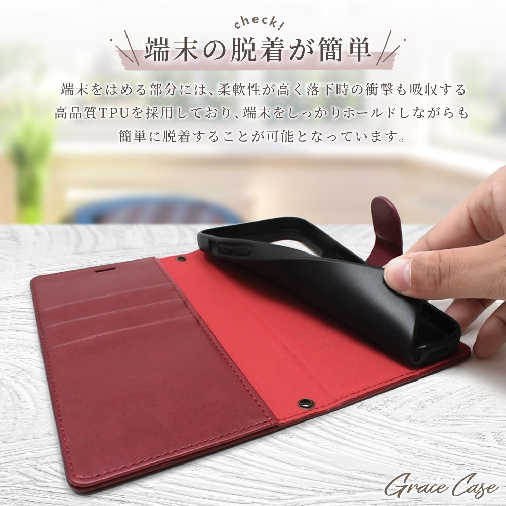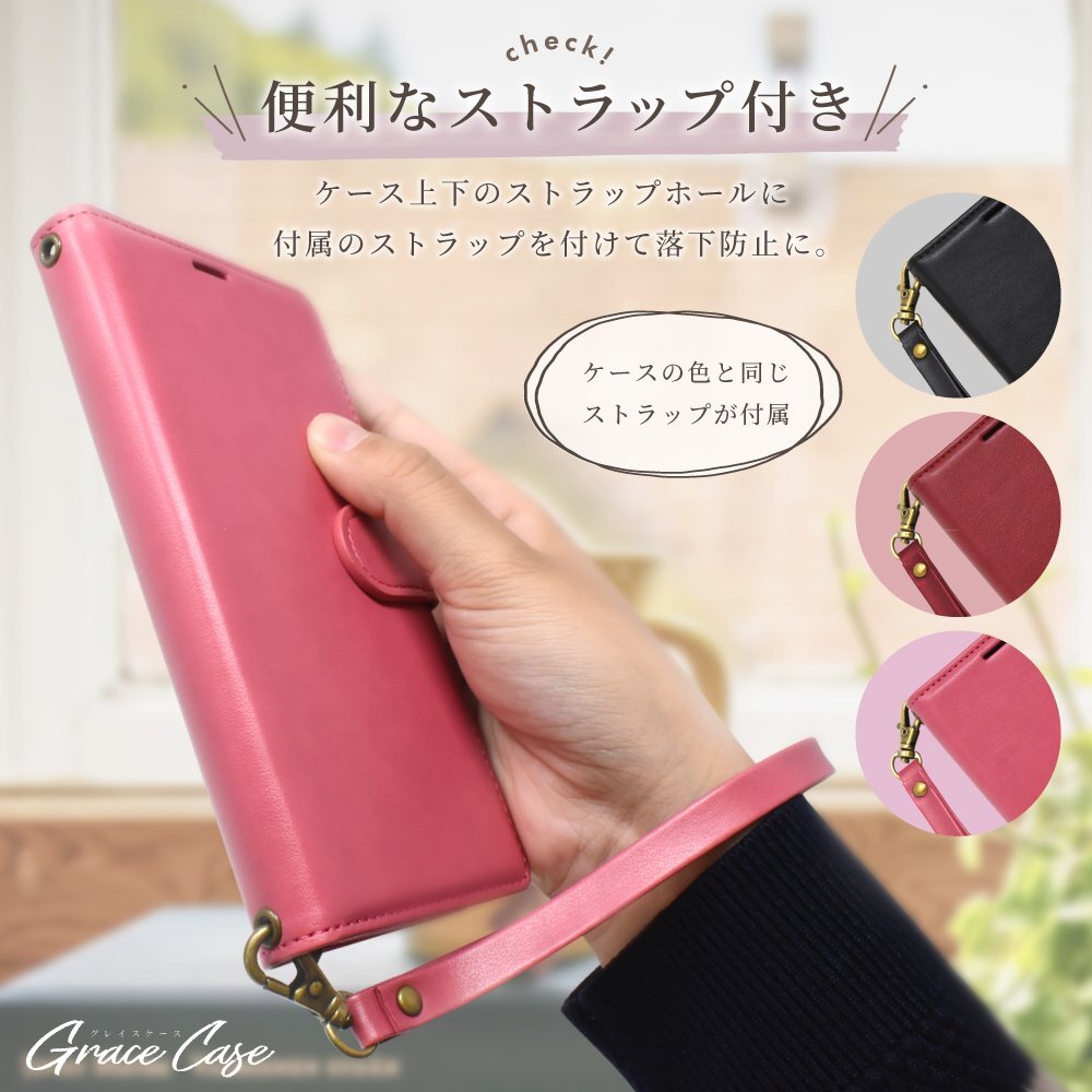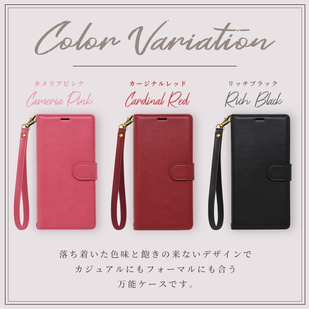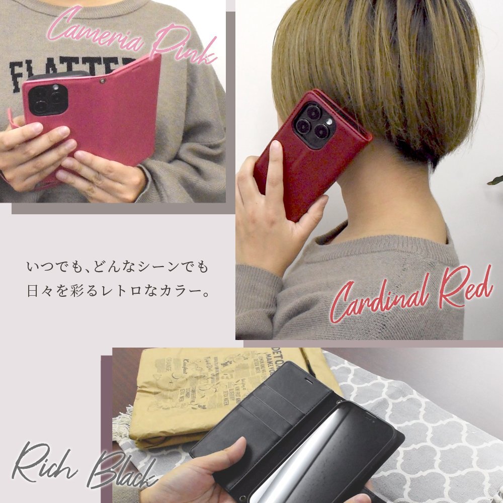 仕様:耐衝撃・衝撃吸収・ストラップホール(上下2ヵ所)・カードフォルダ3枚・収納ポケット・マグネット留め・スタンド機能