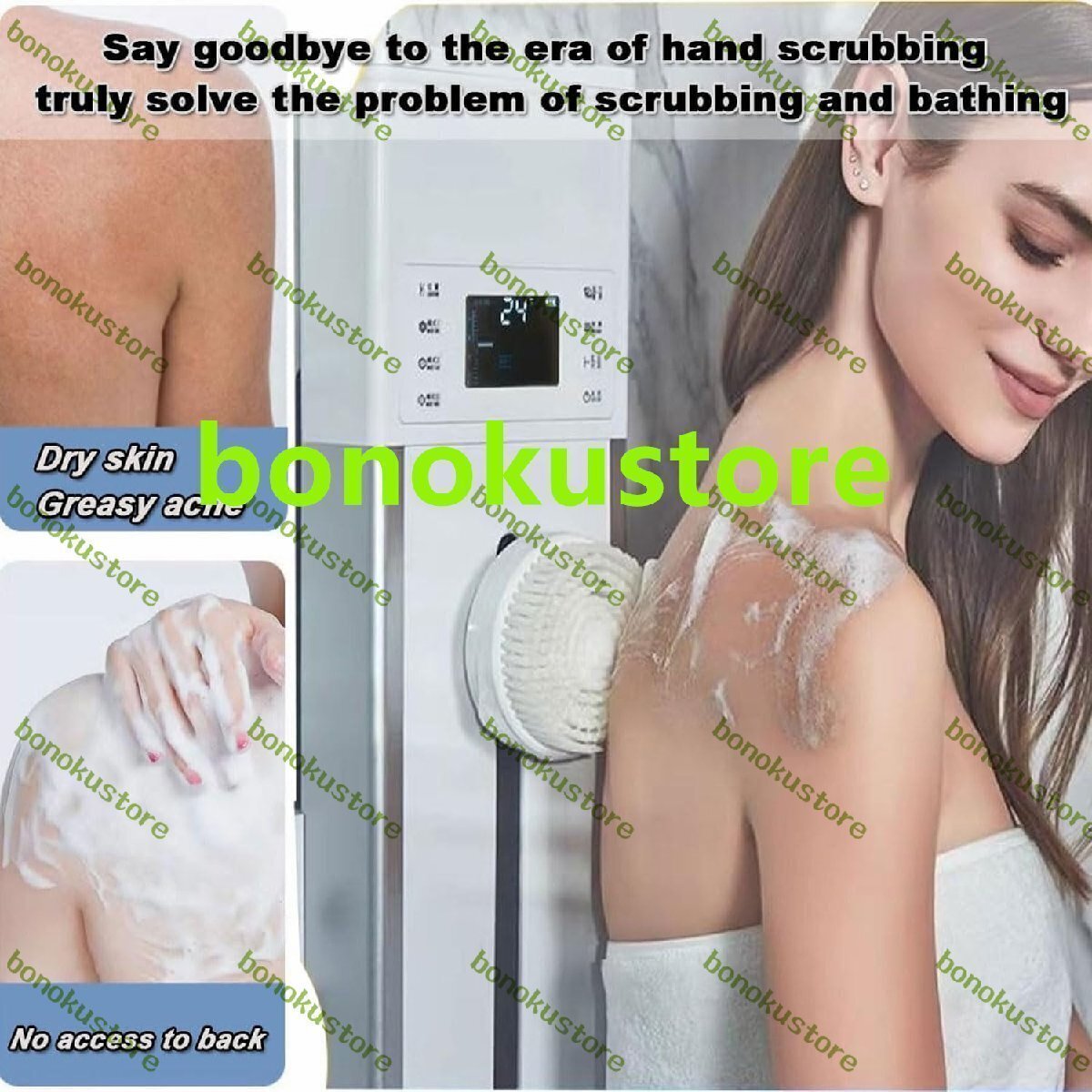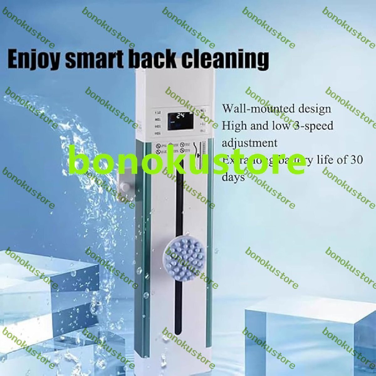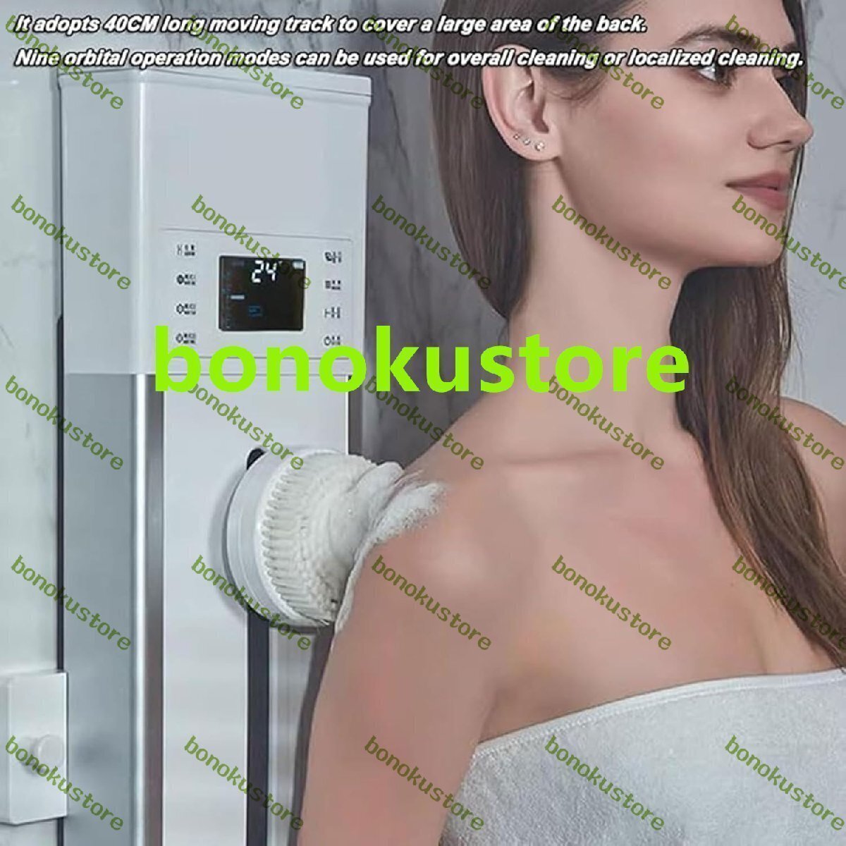 壁掛け電動ボディスクラバー、3ブラシヘッド付き3スピード自動バックスクラバー、9つの動作軌道モード、ティーンエイジャー、大人、高齢者向けの充電式スマートクリーナー