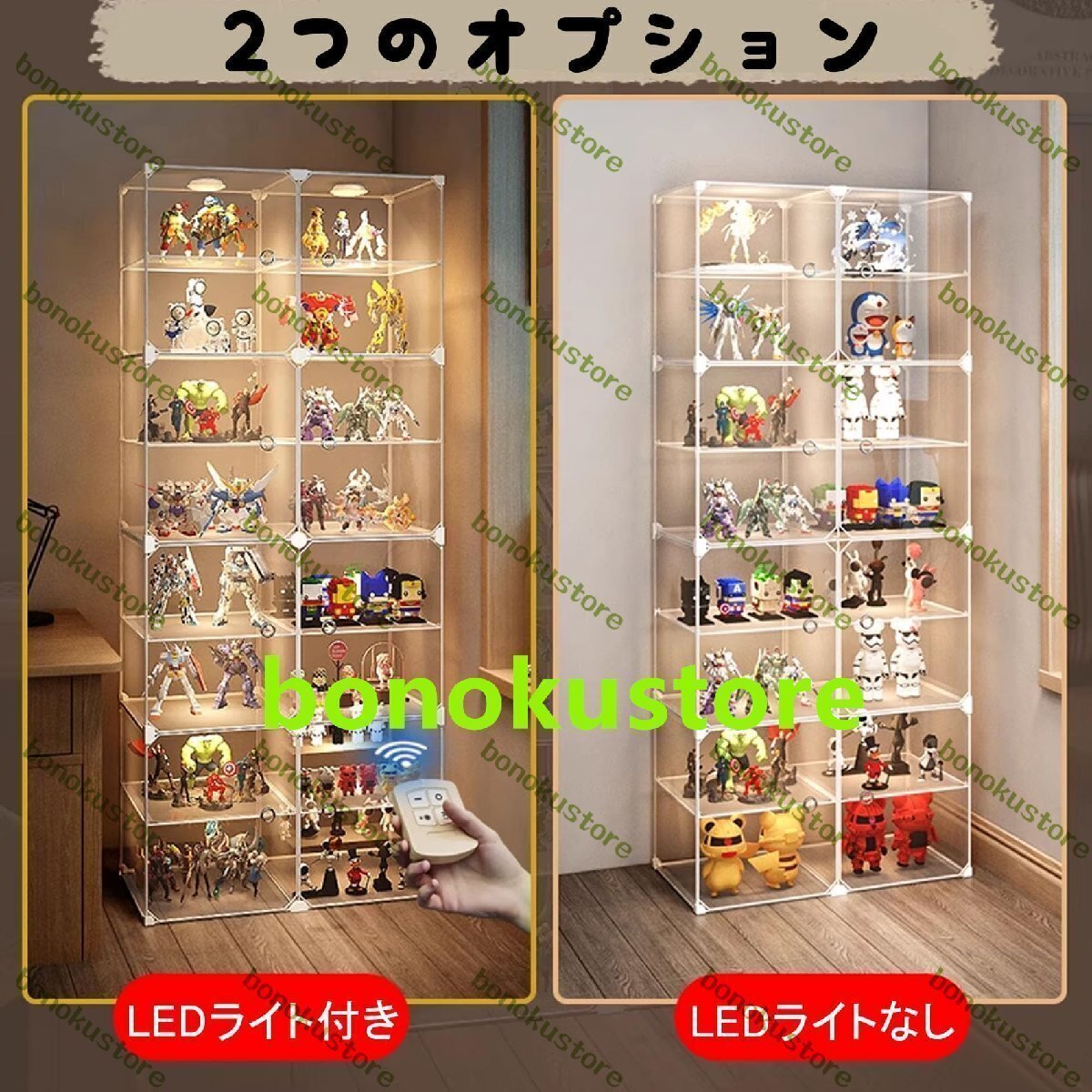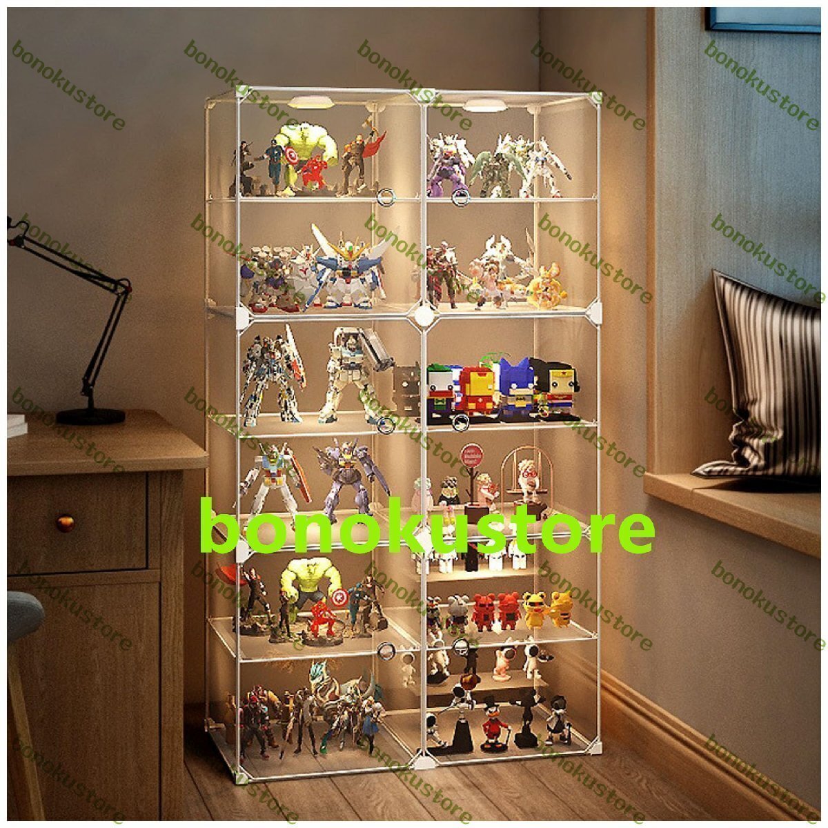 フィギュアラック 大容量 HD透明 フィギュアケース ディスプレイラック ションケース ディスプレイケース コレクションボックス ショーケース 収納棚 整理棚 収納ボックス 耐久性 省スペース 多用途 透明 組み立て式 2列6層-LED