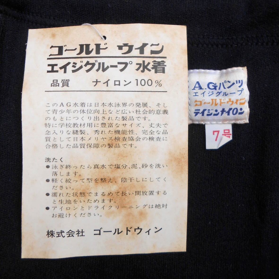 | 商品説明 | ~ ’80s GOLD WIN A.G パンツ ( 株式会社 ゴールドウィン エイジグループ スクール水着 ) MADE IN JAPAN ( 日本製 ) 『 ナイロンストレッチジャージ生地 ( テイジン製ナイロン生地 & 通常スイムウエアジャージオンス ) 等 』 サイズ表示 【 7号 】 品質表示 【 ナイロン 100% 】 カラー 【 ダークネイビー ( 濃紺 ) 】 【 コンディション 】 未使用 ( デッドストック ) です。 各画像どおり、ストック時のウエスト紐 & 裏地にシミ感を確認できます。 宜しくどうぞお願い致します。 ![]() | |