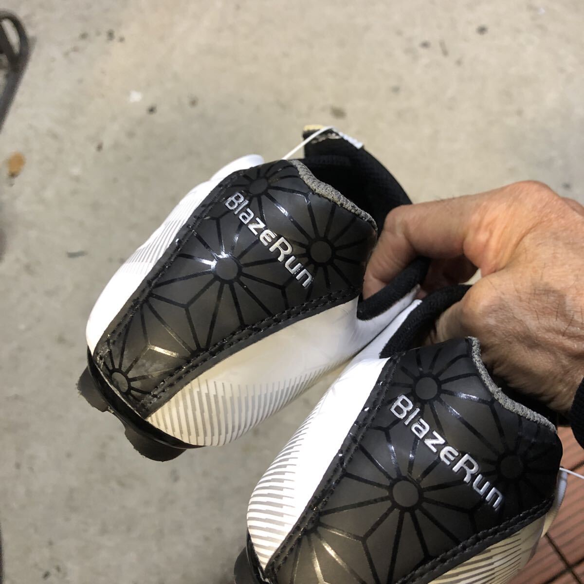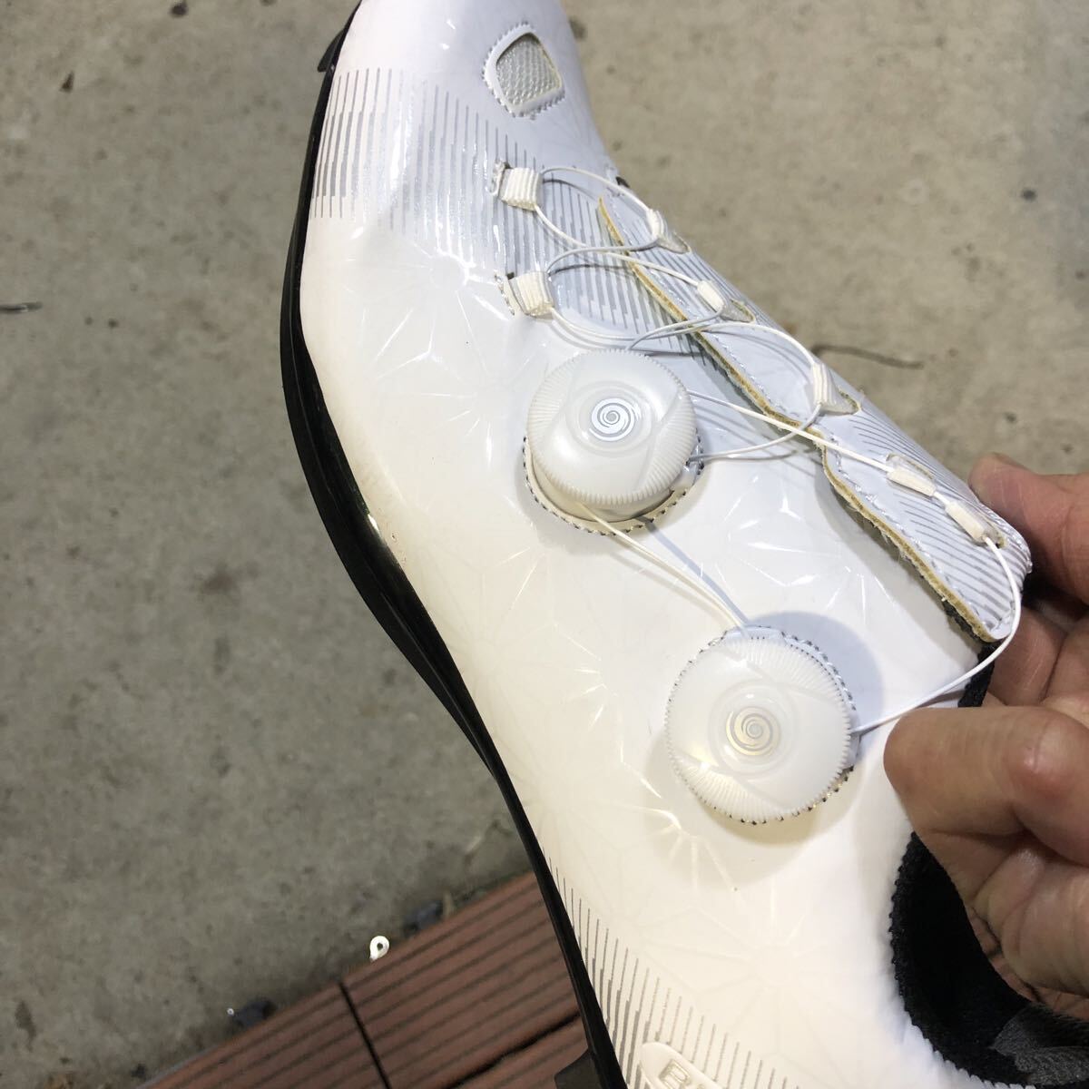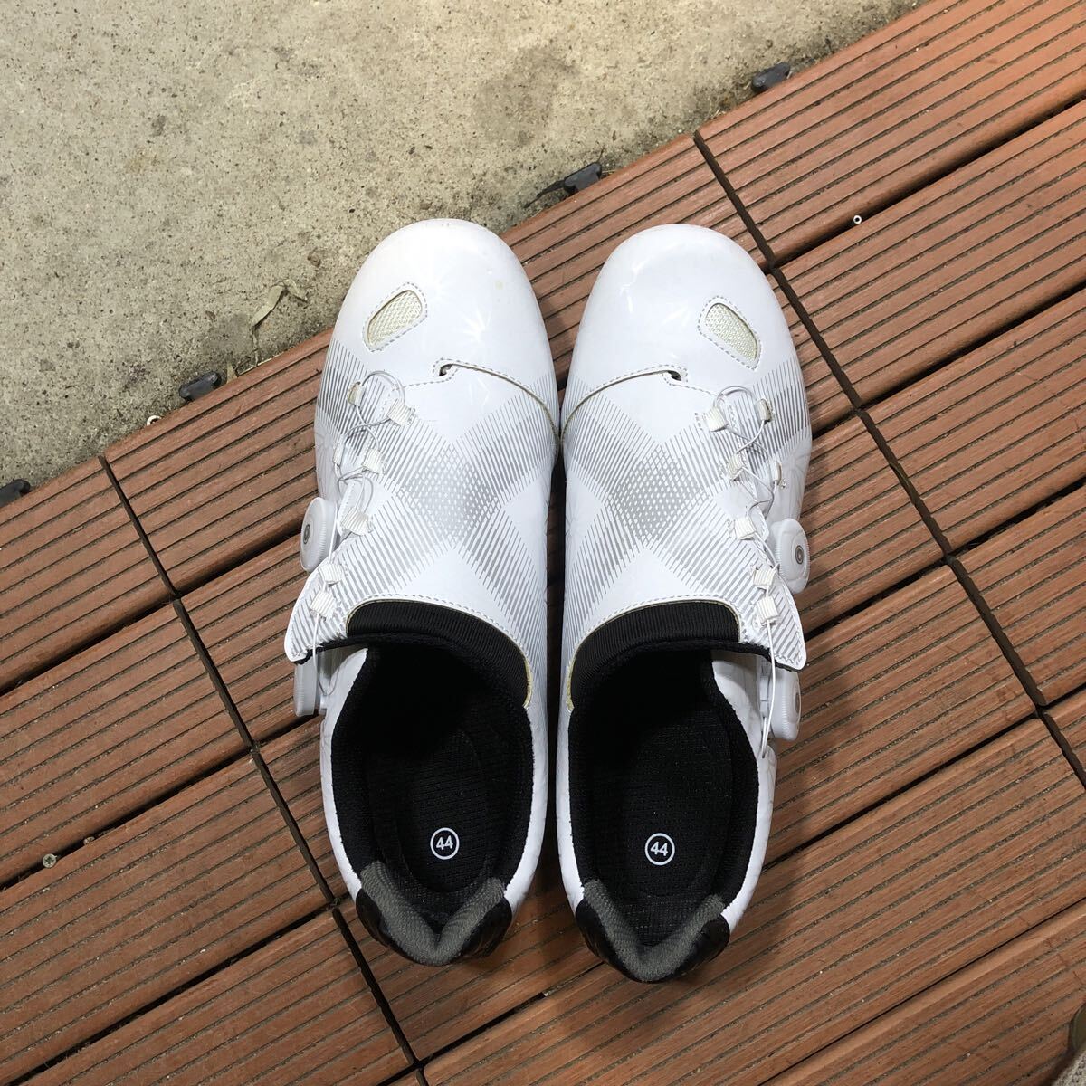 クリートを付けて1回50km走行しただけです。 自身は他のビンディングシューズで27.5cmを履いており、冬場には厚手のソックスを履く為少し大きめのこのシューズを買ってみました。 自身は左27 右27.5cmである為か、やはり左がブカっとしました。