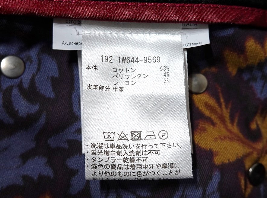 19AW 定価10万 使用少 極美品 ETRO エトロ ボタニカル柄 ベロア デニムパンツ ジーンズ SLIM FIT ブラック コットン メンズ 32