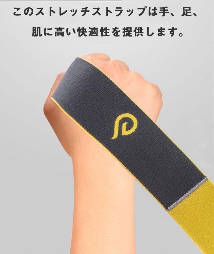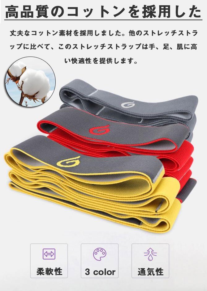 丈夫なコットン素材を採用しました。他のストレッチストラップに比べて、このストレッチストラップは手、足、肌に高い快適性を提供します。 強い握力はあなたが関節の伸びを助けます。ゴム臭ががなし、洗濯できます。伸縮性・柔軟性・耐久性に優れています。