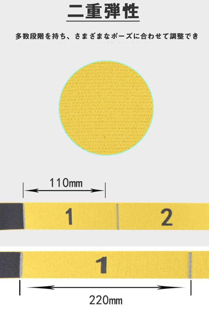 独立した6のストラップループで組み合わせて、長さ調整により負荷を変えることができます。いは組み合わせで使用によて、最も適合な負荷力で筋トレができます。ヨガのストレッチをしたことがなくても簡単に使えます。