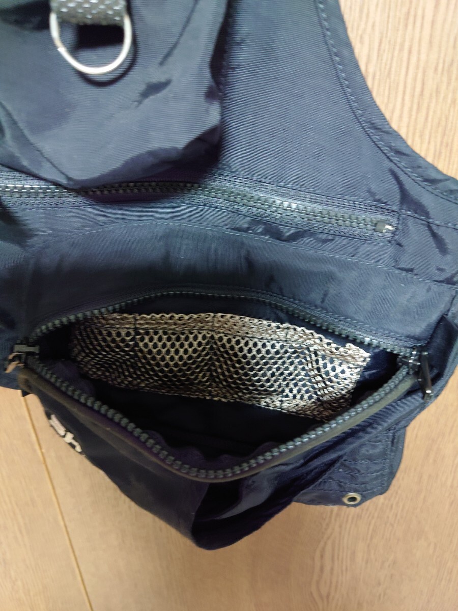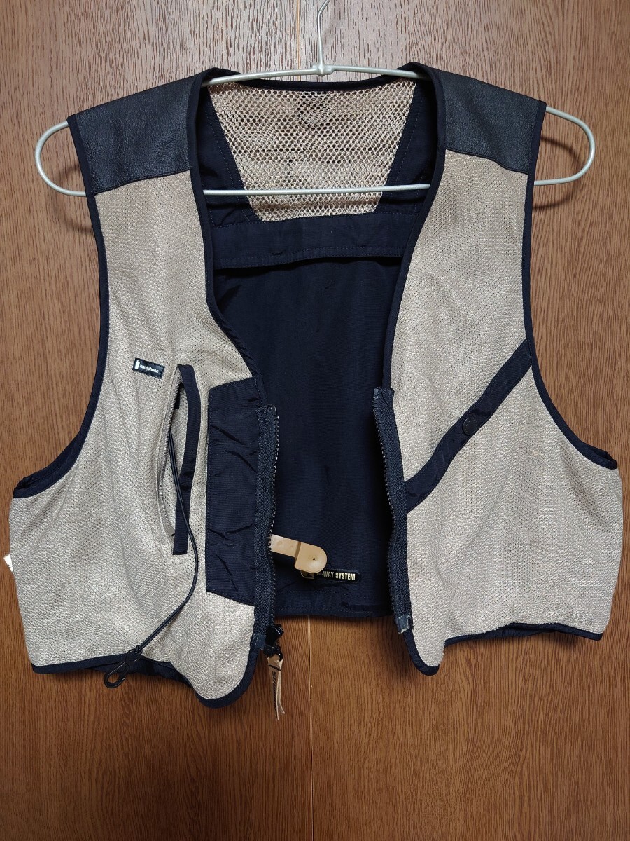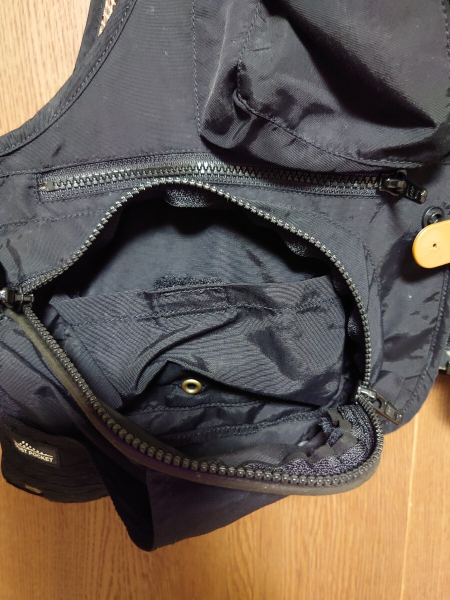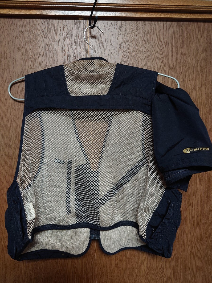 背中の部分が脱着可能な2AWY構造で外すした部分は襟にあるポケットに収納できます