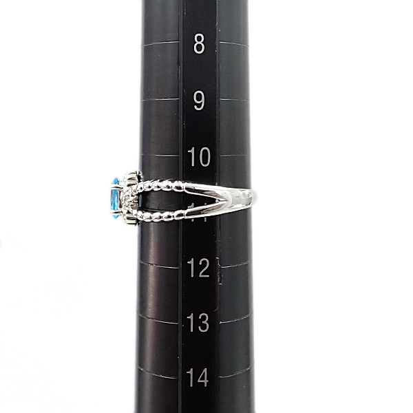 ブルートパーズ リング ダイヤモンド Pt900 ミル打ち ミルグレイン 透かし 送料無料 中古 宝正 903025