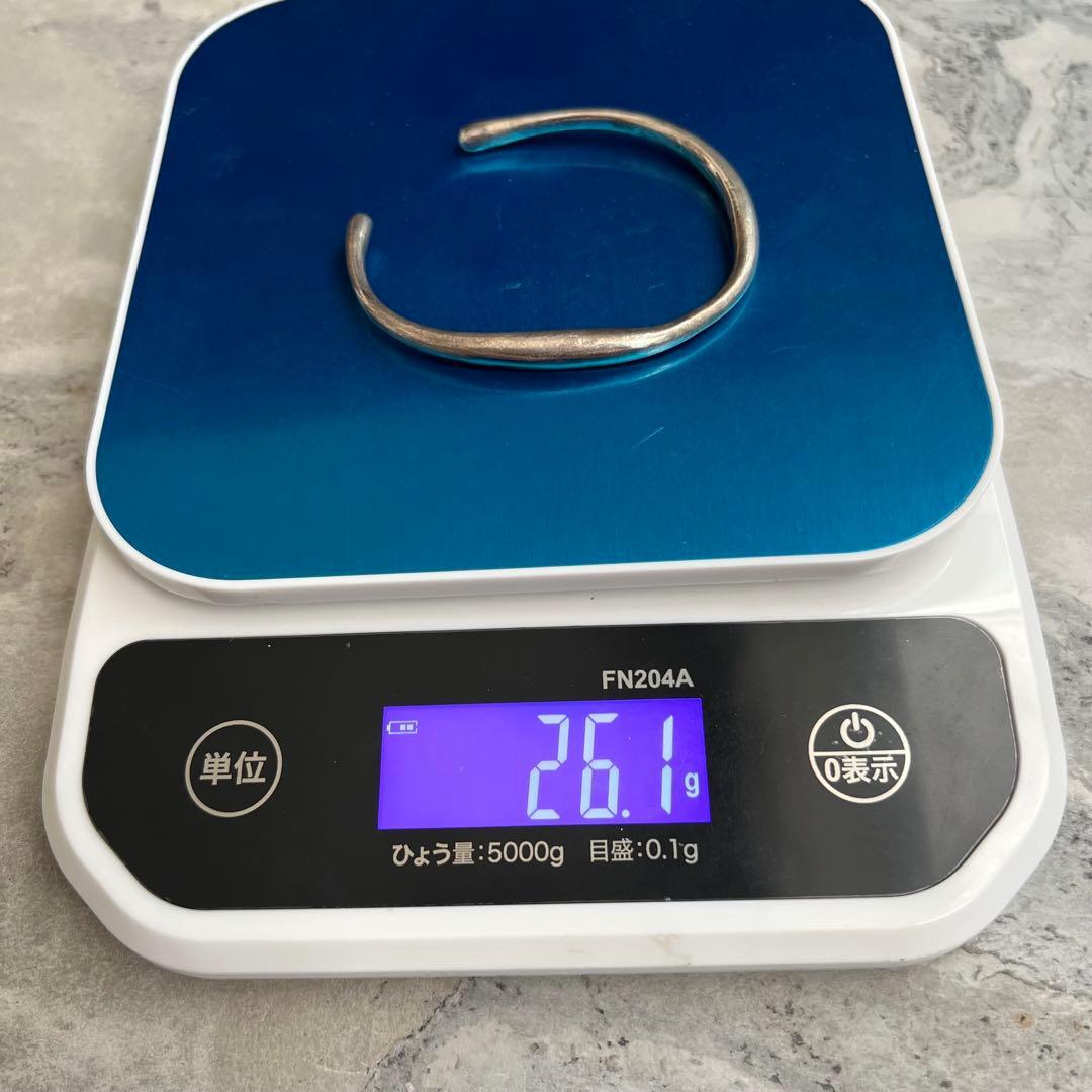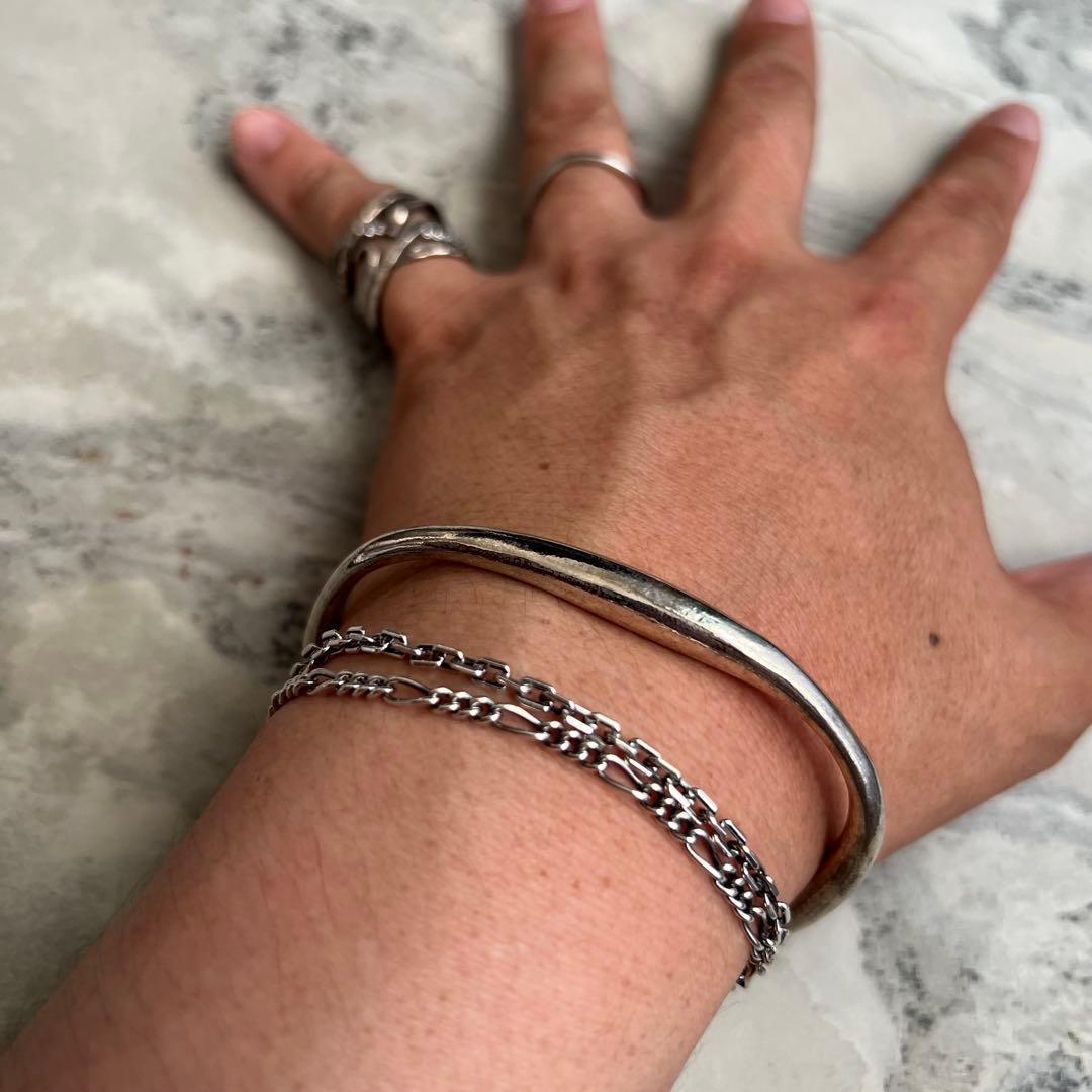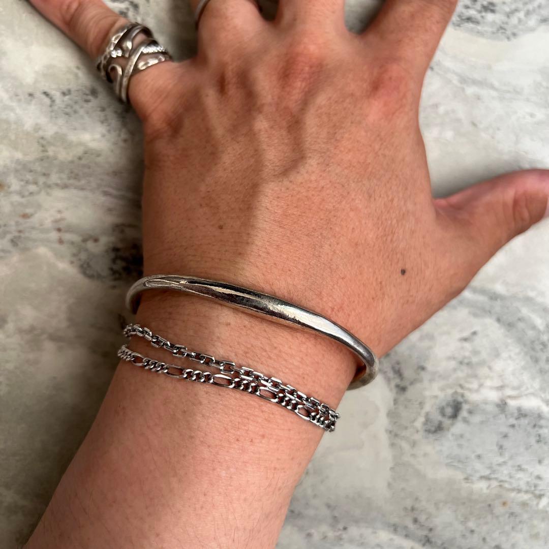 厚めで存在感のあるシルバーバングルになります。