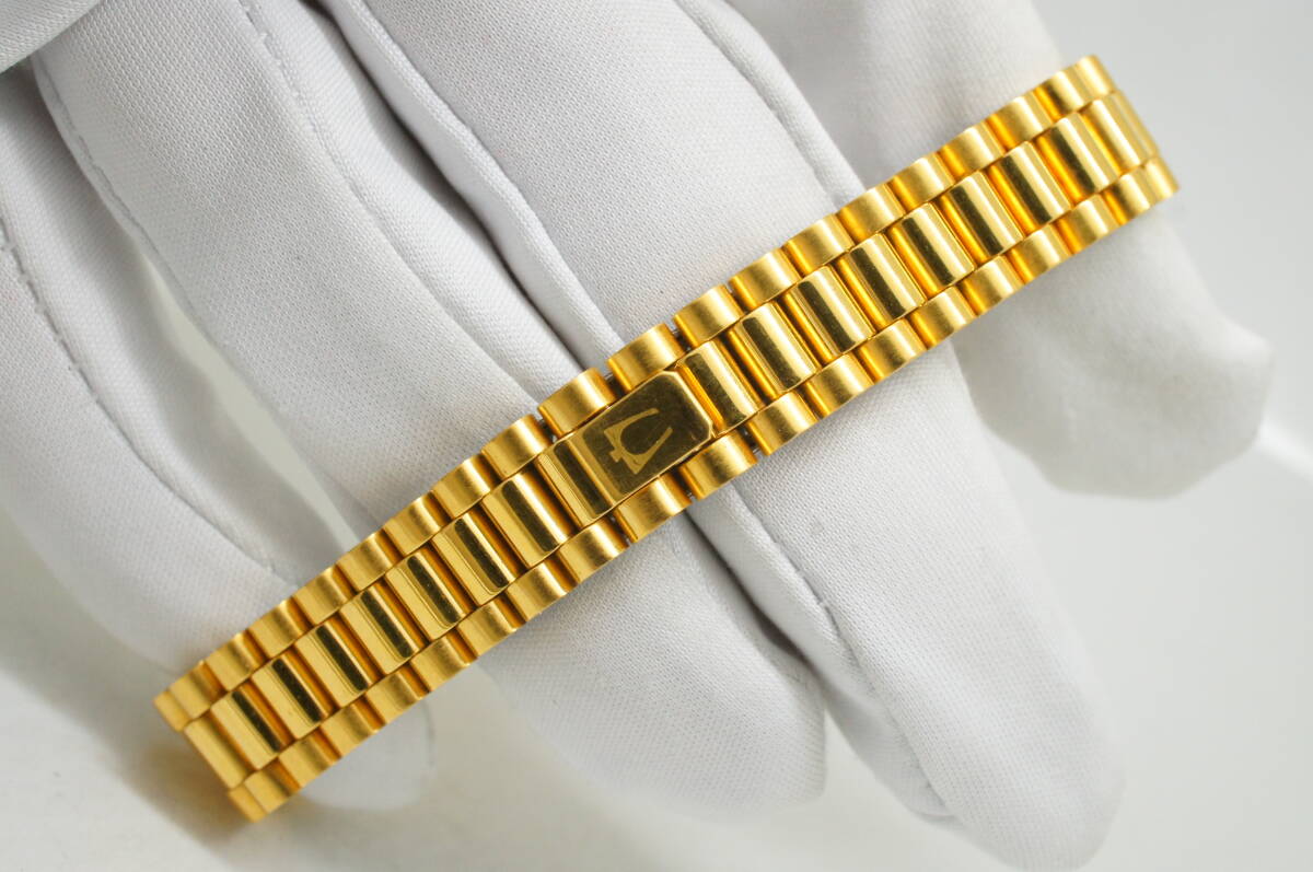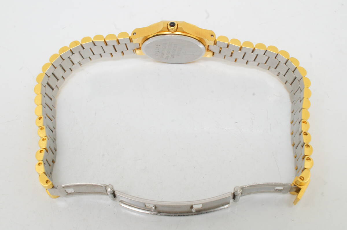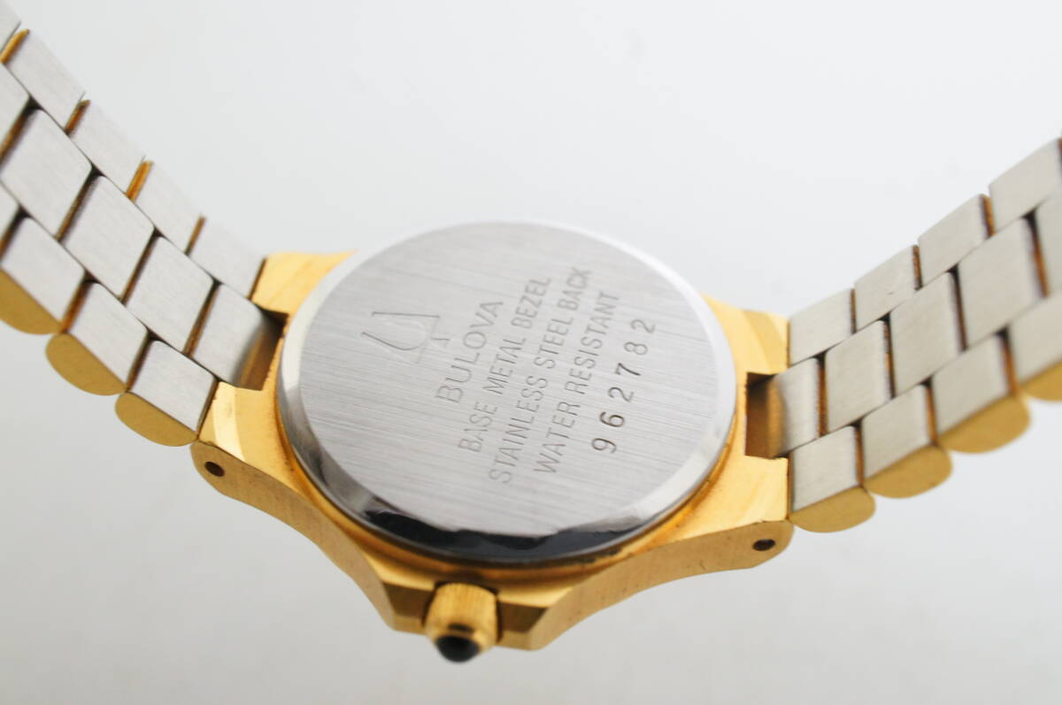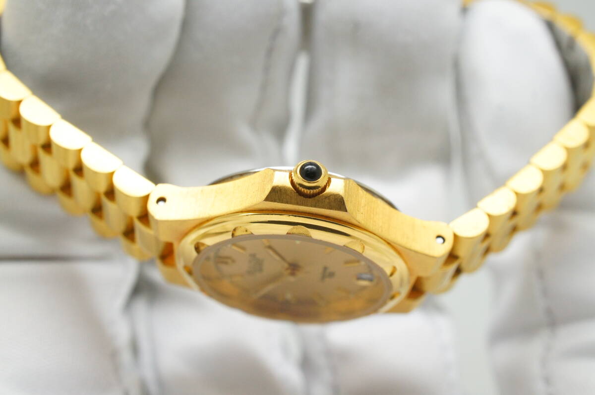J172●作動良好 BULOVA ブローバ Longchamp 金文字盤 ラウンドケース型 デイト レディース腕時計 ゴールド金 お洒落 クォーツ