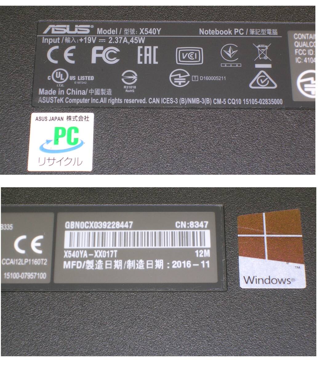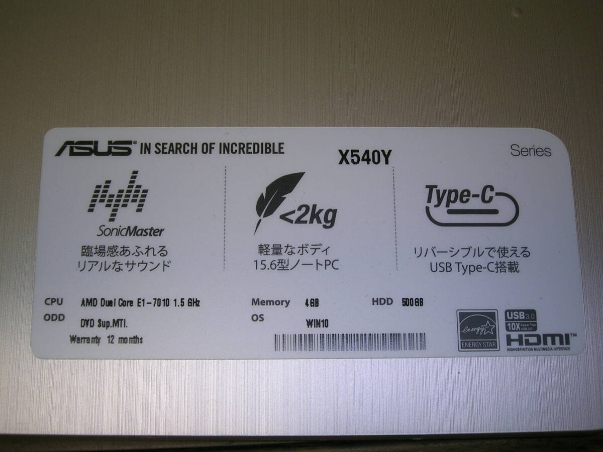 ASUS X540Y CPU:AMD E1 メモリ:4GB 低スペックPC  Win11無理やりインスト HDD&固定ネジ欠品 ジャンクで(1160f)