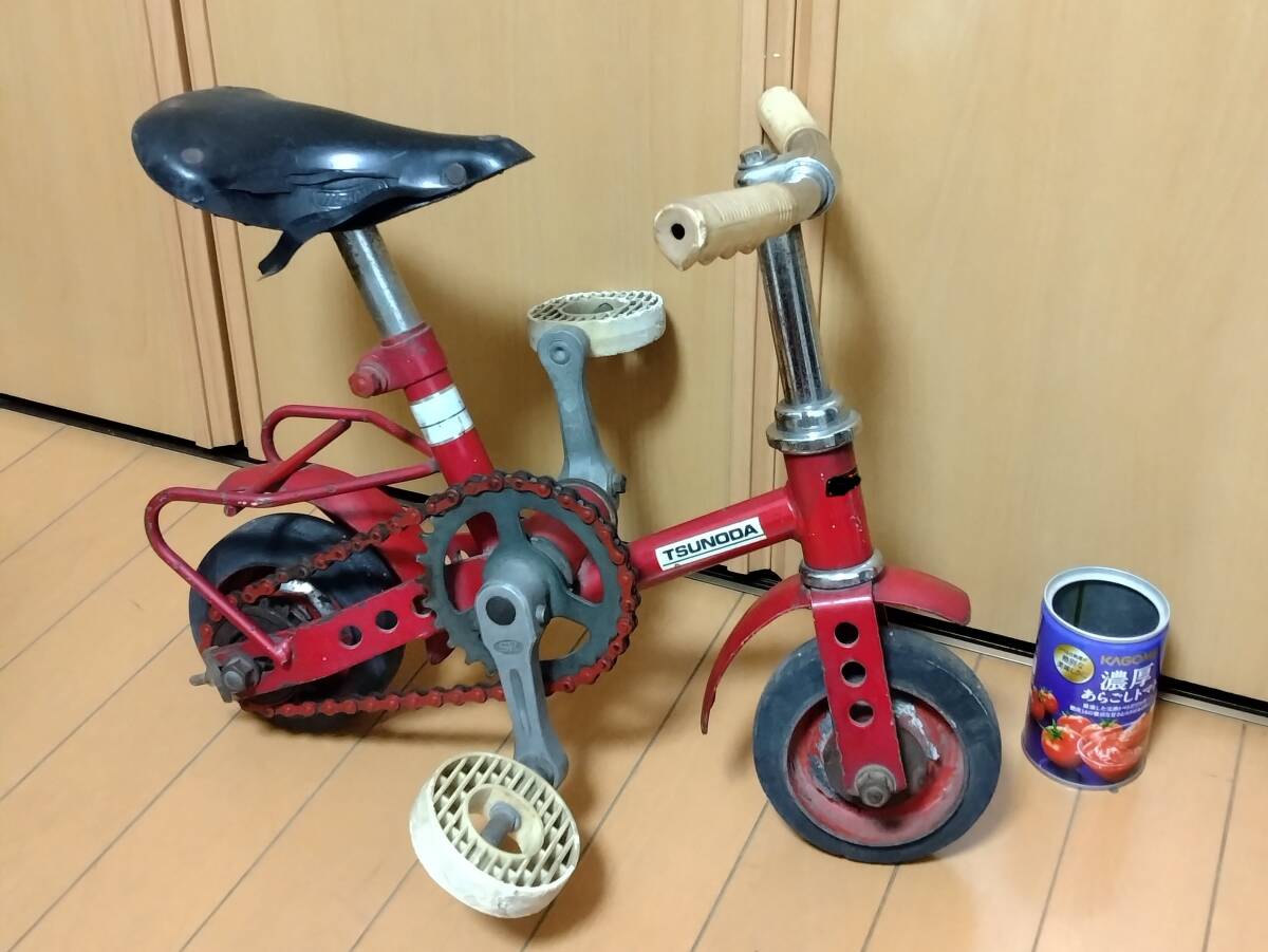 可動 ツノダのミニ自転車です(空き缶は大きさ比較用)。