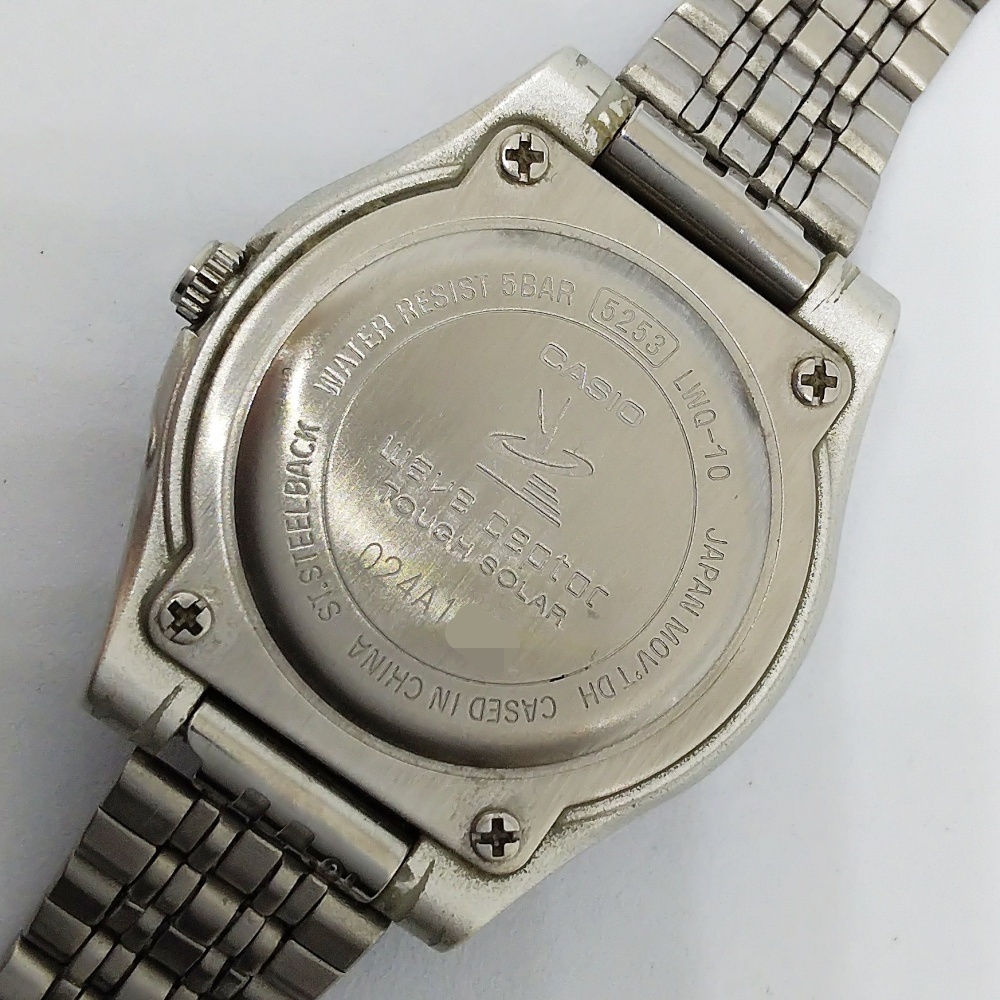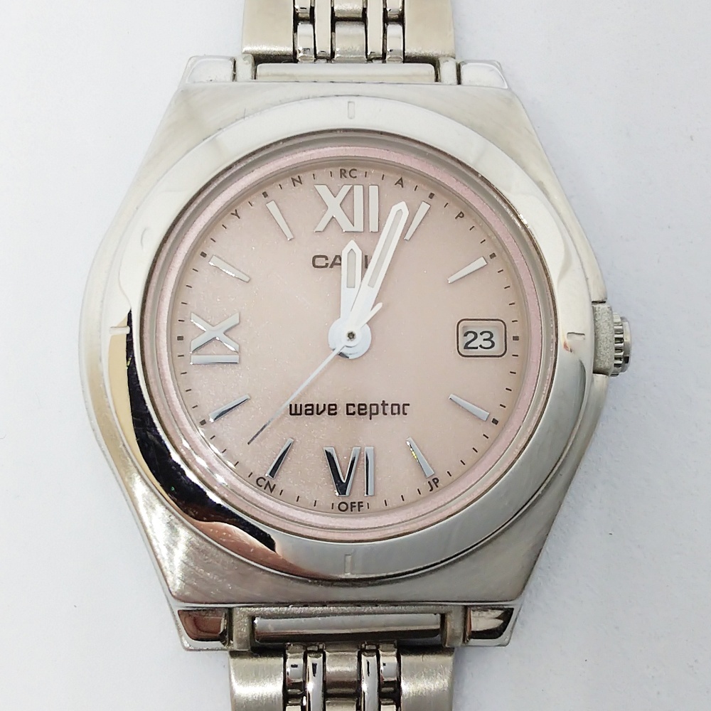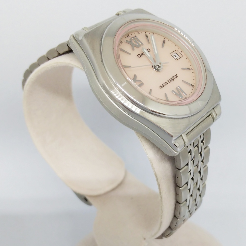 B25-2003 CASIO カシオ LWQ-10DJ-4A1JF ウェーブセプター レディース デイト 3針 SS タフソーラー 電波 稼働 社外ベルト 動作確認済 箱付
