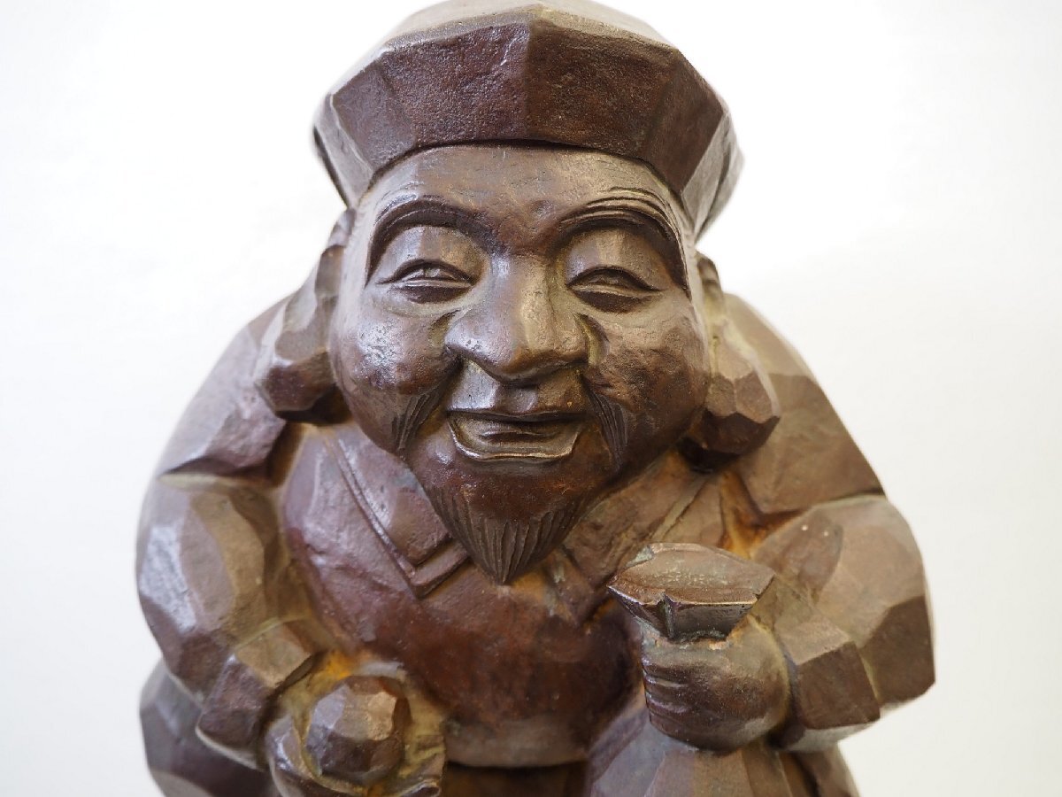 ★☆ 【 銅製 木彫り風 大黒 置物 高さ約40cm 】大黒天 大黒様 七福神 縁起置物 ☆★