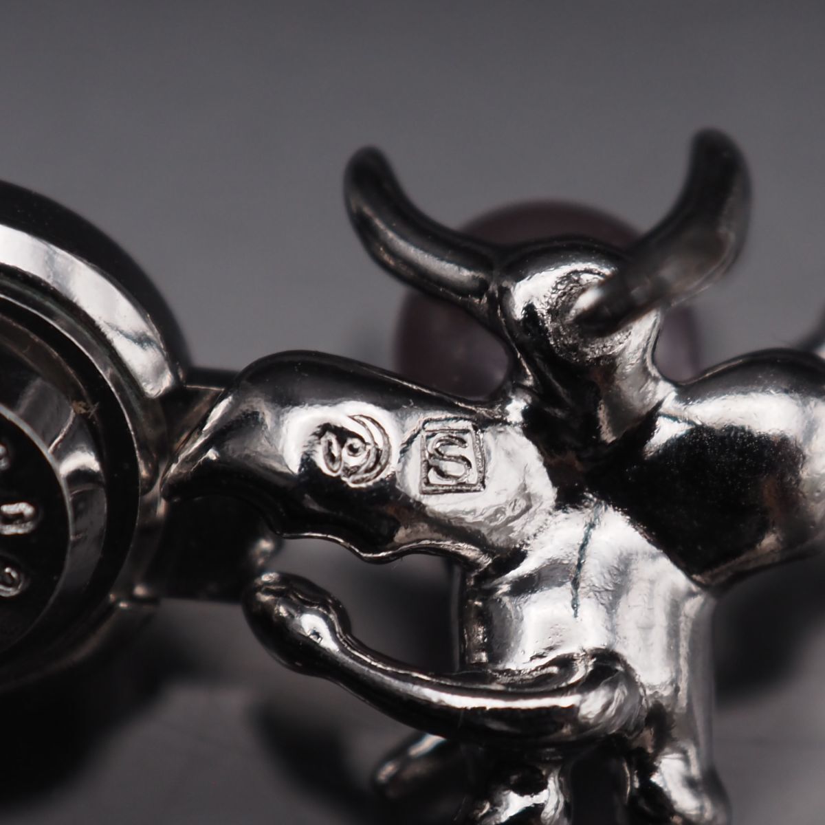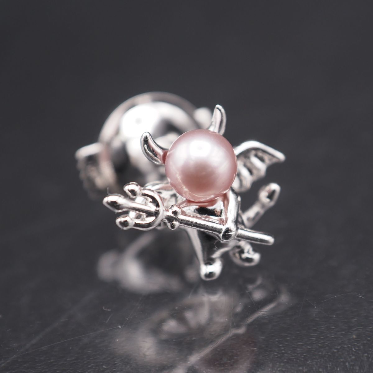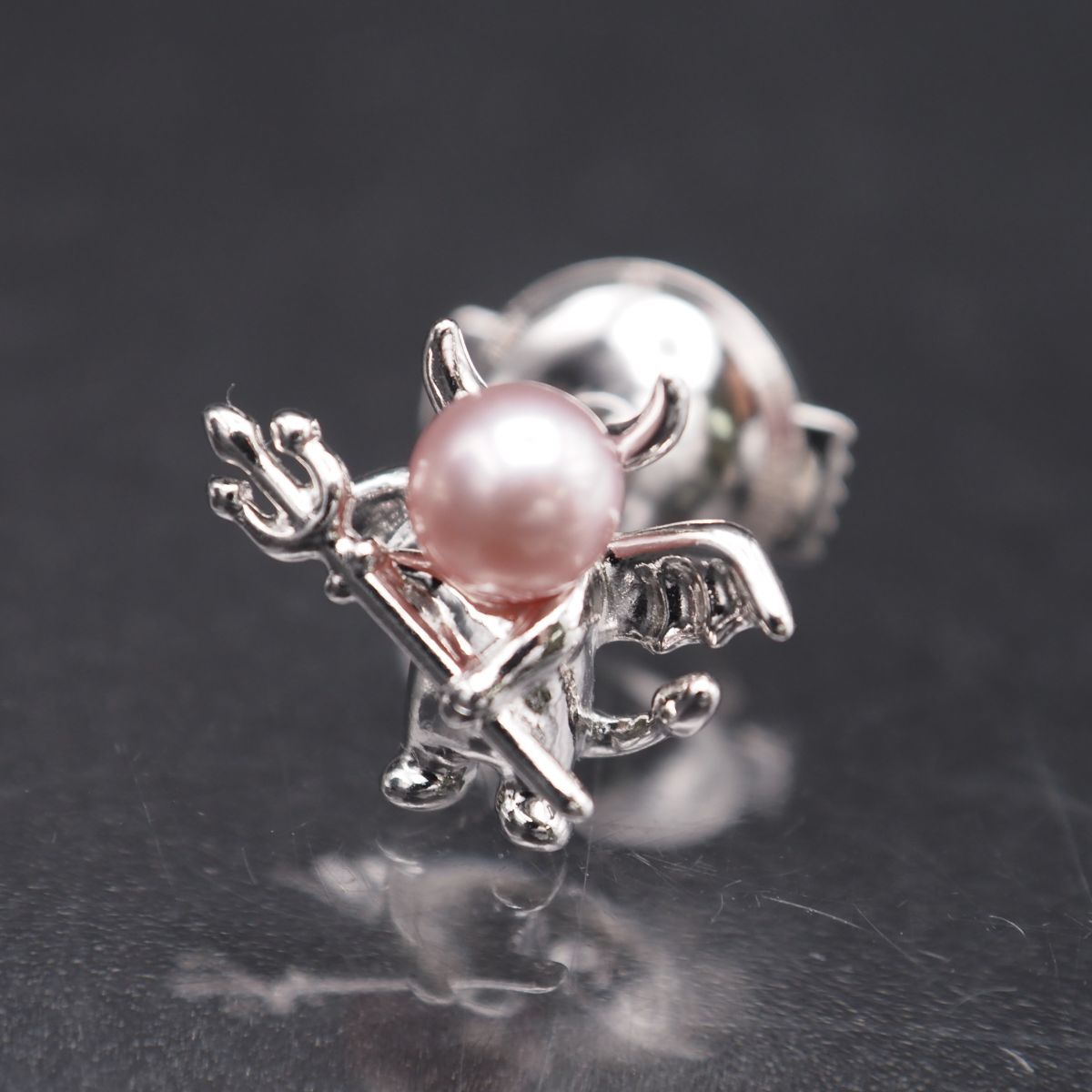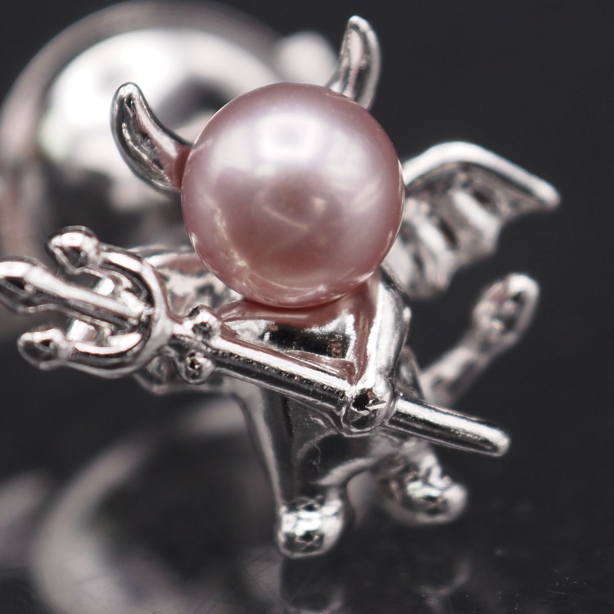 H138 タサキ 田崎 TASAKI 真珠 4.9mm珠 パール S刻印 ピンブローチ 悪魔 デビル デザイン シルバー ラペルピン 6月誕生石