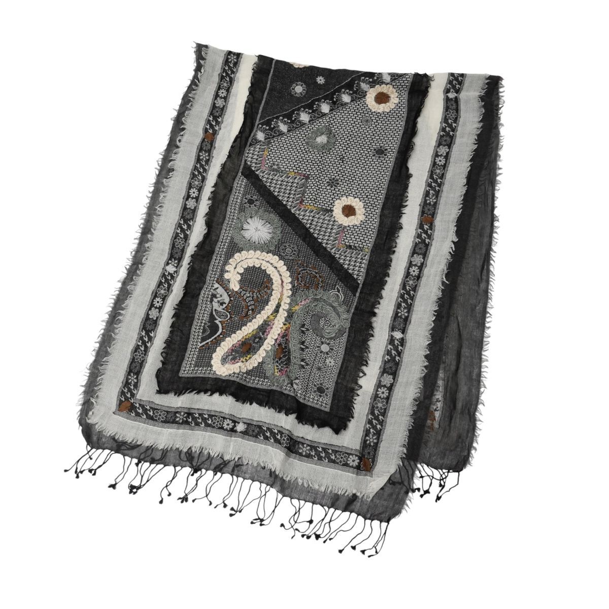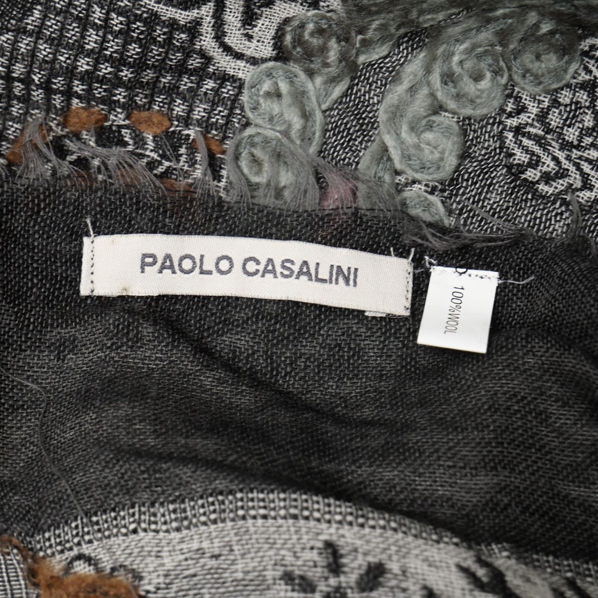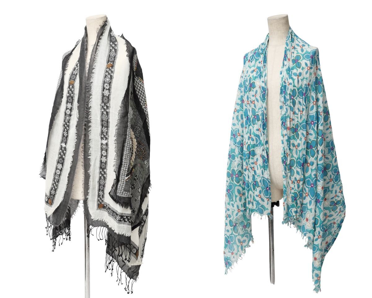 | TJ5214▽PAOLO CASALINI/パオロ・カーサリーニ 2点セット ウール コットン 花柄 大判 ストール マフラー ショール グレー系 ブルー系 | |||