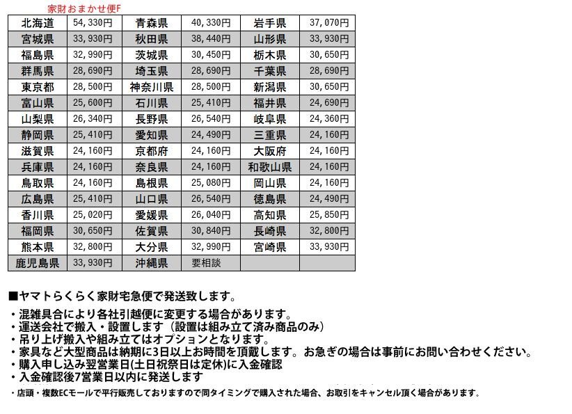 | 商品画像内の送料表にてご確認ください。画像に送料表が表示されない場合はお手数おかけしますが都度お問い合わせをお願いいたします | |