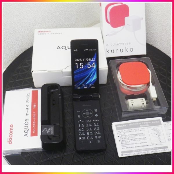 | A1-25◆docomo SH-02L ブラック AQUOS 4Gガラホ ケータイ SHARP ガラケー 利用制限〇 卓上ホルダ・ACアダプタ付 |