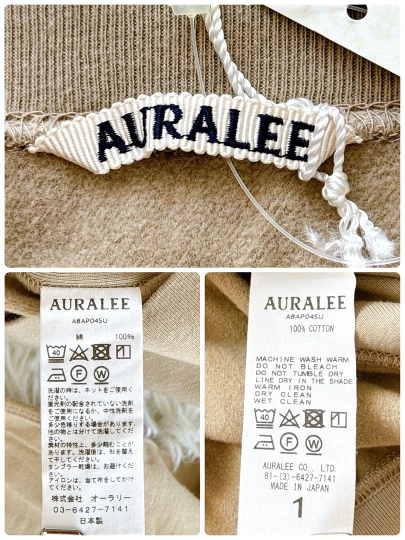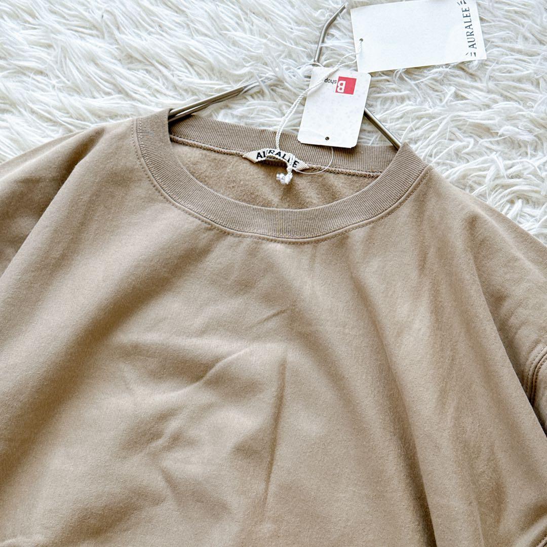 AURALEE オーラリー SUPER HIGH GAUGE SWEAT スウェット トレーナー ライトブラウン ベージュ メンズ 1サイズ Sサイズ クルーネック 裏毛 コットン 日本製 タグ付き 未使用品 美品 上質 ベーシック シンプル 高密度 スムース スウェットトップス クラシック ブランド古着 正規品