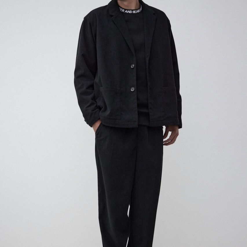 ■表面感のあるコーデュロイを使用したジャケット。 ■生地は縦横にカットした変形コーディロイ(オリジナル柄)です。 ■ベーシックなシルエットなので、合わせやすいアイテムです。 ■生地の表面、肉感含め温かみ、なめらかさがあり、着心地を良くする為に柔らかく仕上げています。 【パンツ】 ■表面感のあるコーデュロイを使用したパンツ。 ■・ウエストはゴムで、中にドローコードが付いているので、楽に着用できます。 ■生地は縦横にカットした変形コーディロイ(オリジナル柄)です。 ■生地の表面、肉感含め温かみ、なめらかさがあり、着心地を良くする為に柔らかく仕上げています。 |