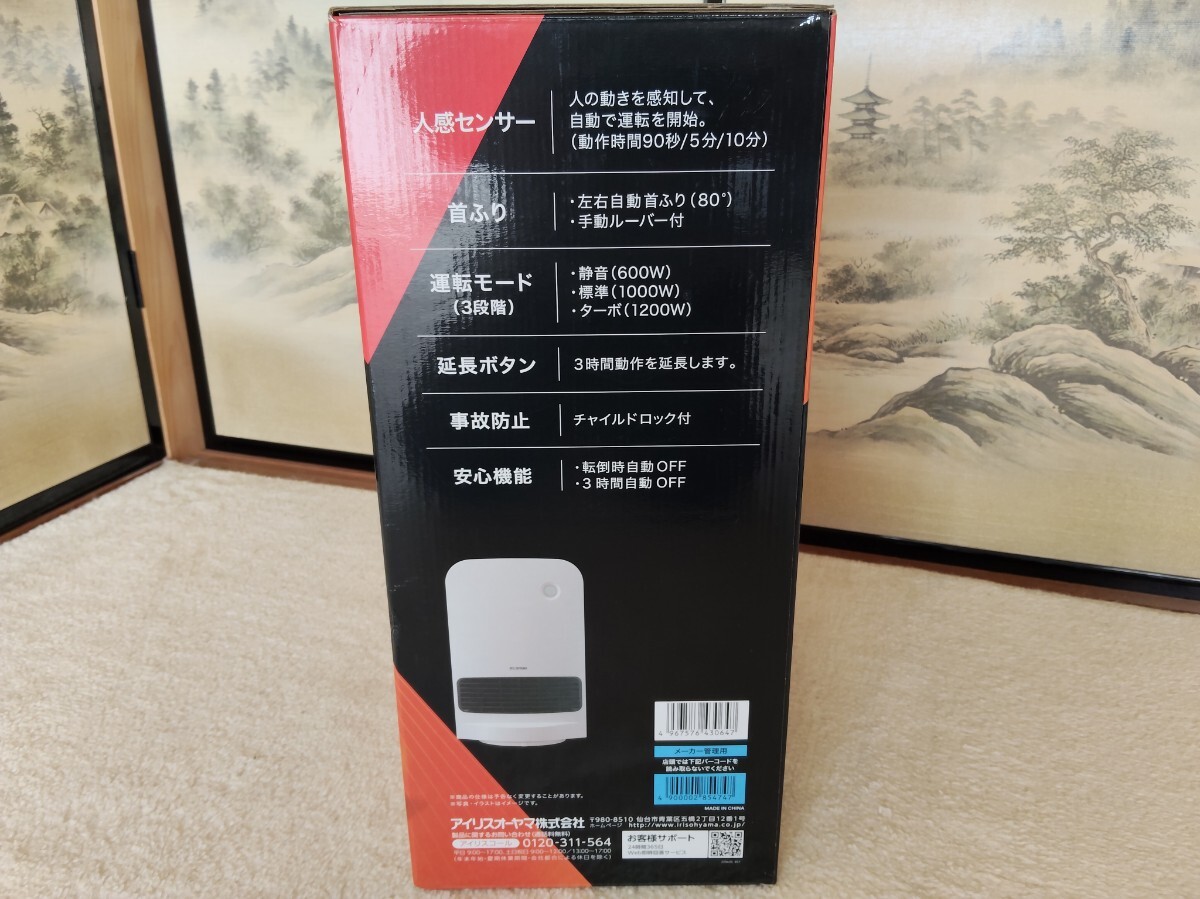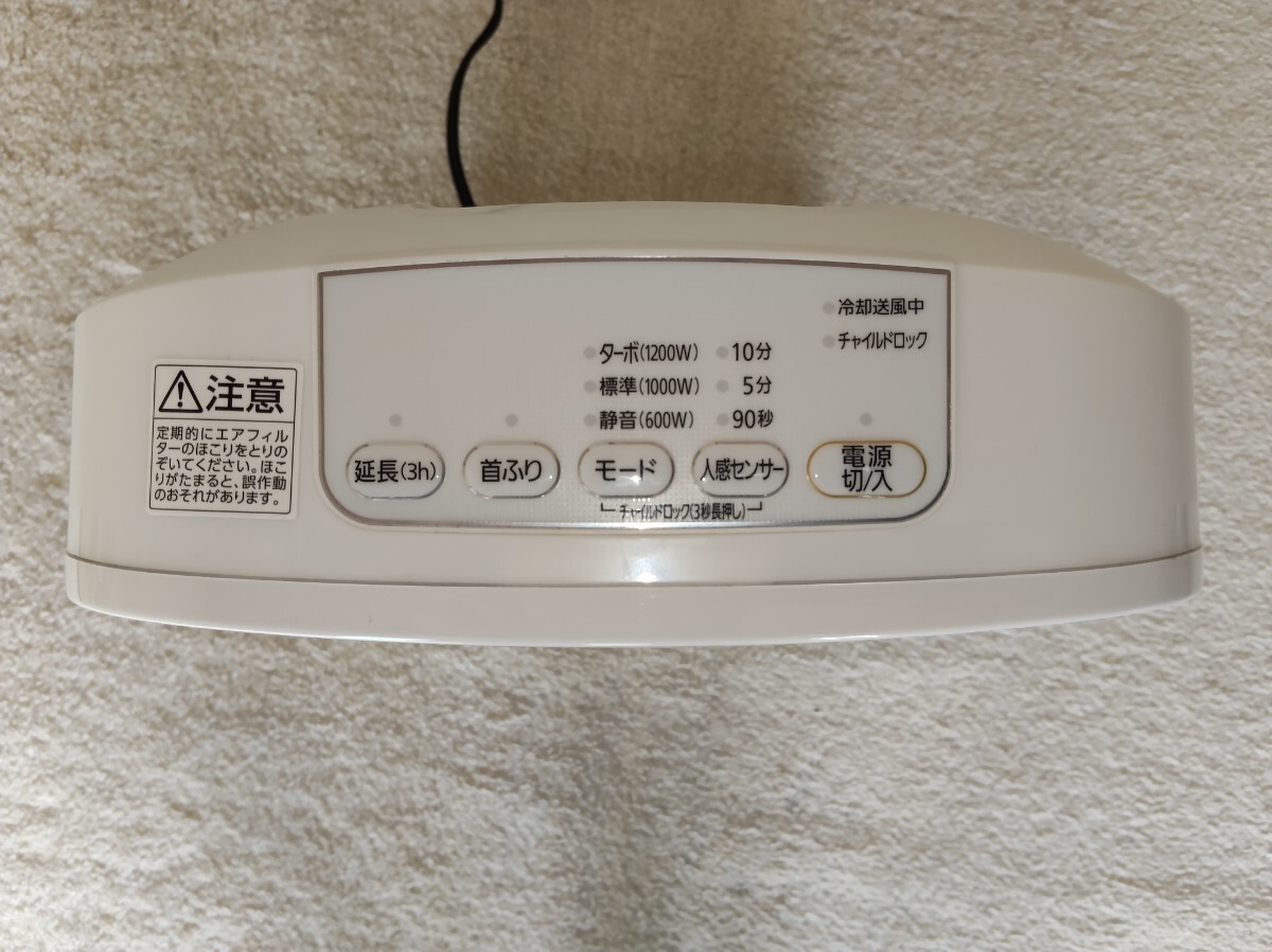 ・人感センサー付き、首振り、1200W、転倒オフ機能、切り忘れ防止。