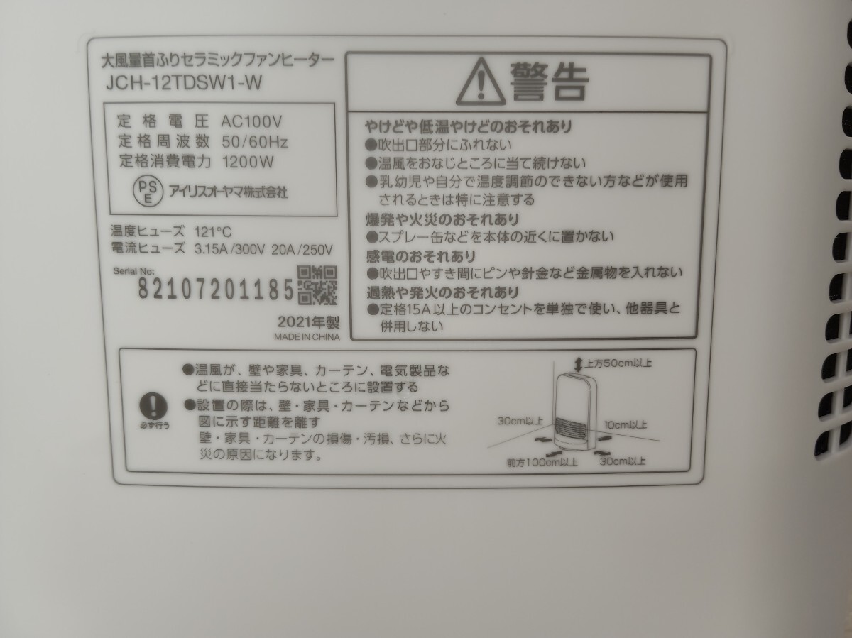 ・アイリスオーヤマのセラミックファンヒータ-JCH-12TDSW1-Wの中古(2021年製)です。