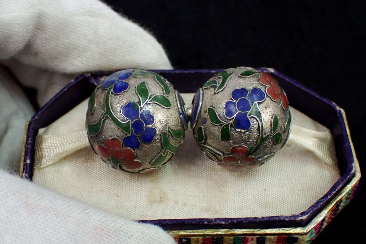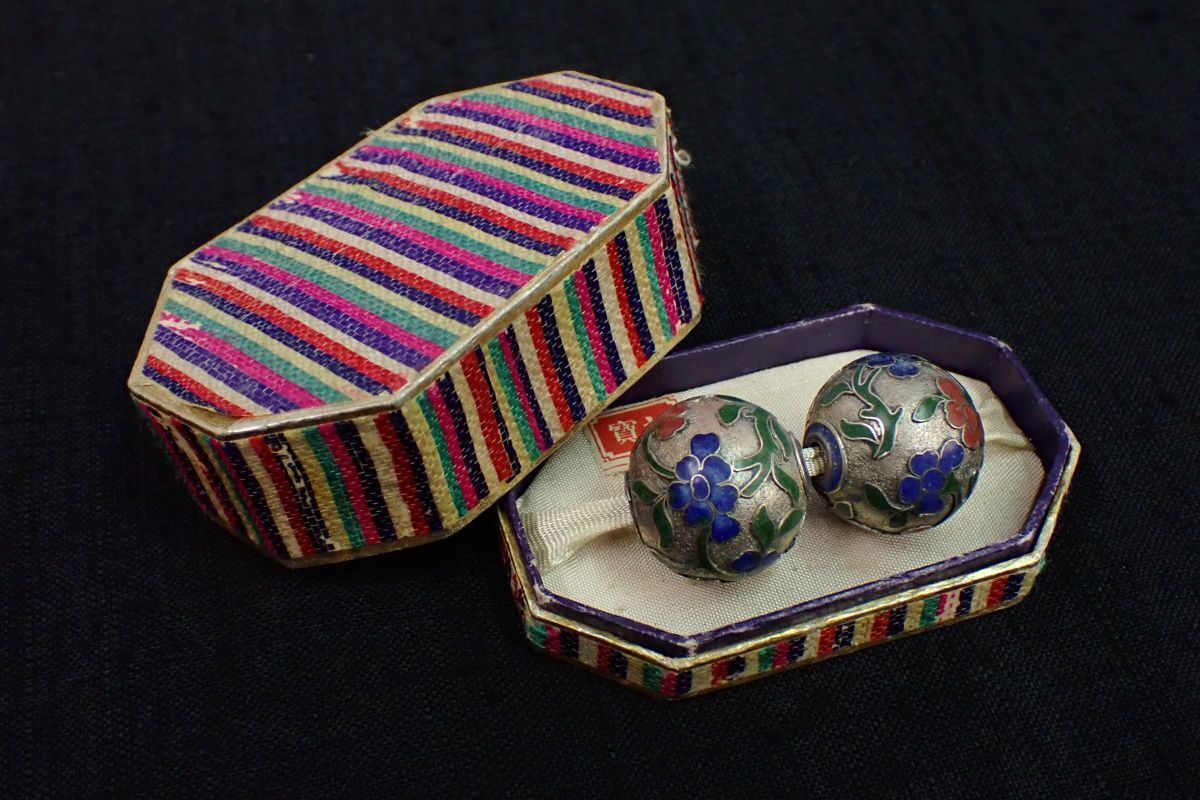 ▲和装品236 七宝焼 古い緒締め玉▲箱付/帯留め/着物/消費税0円