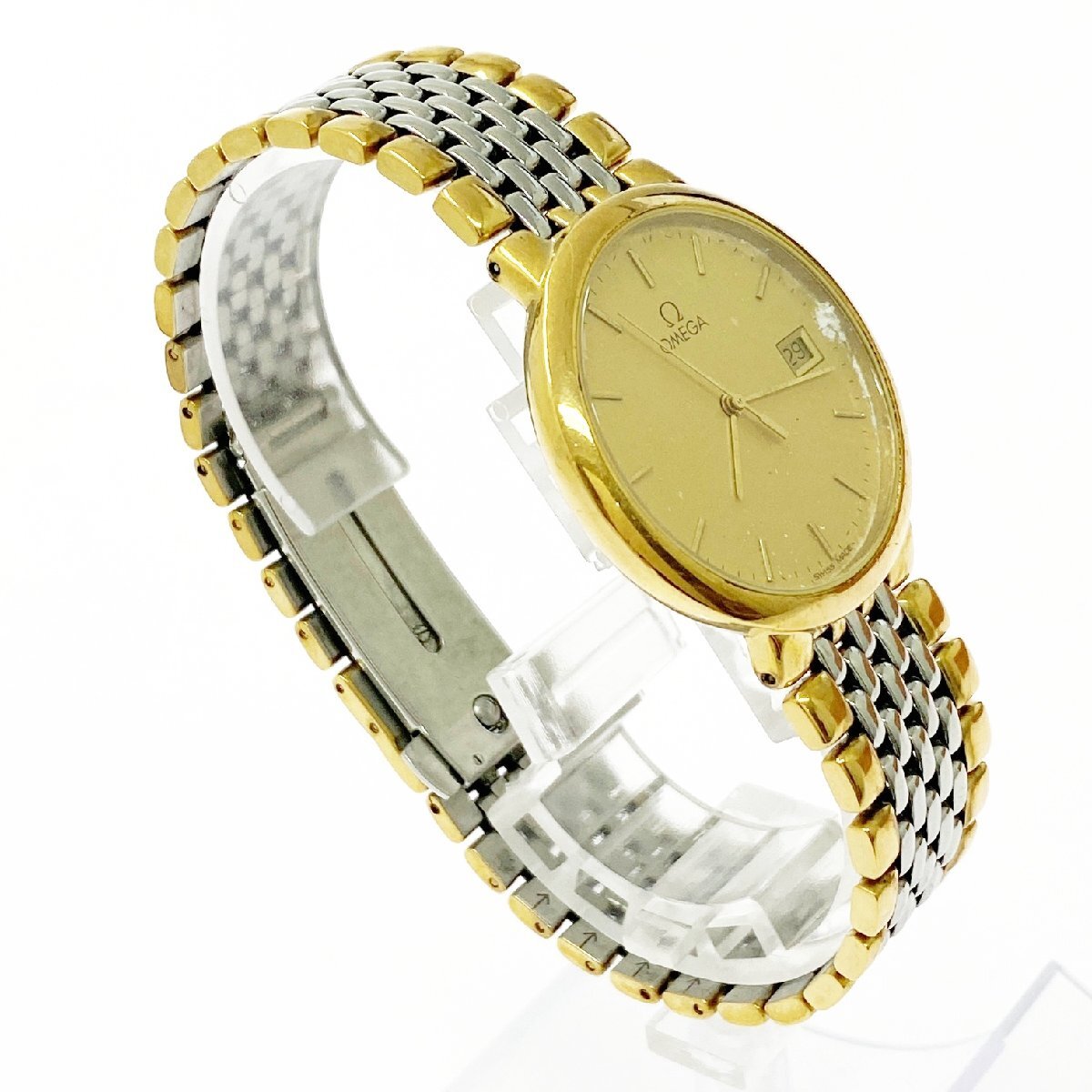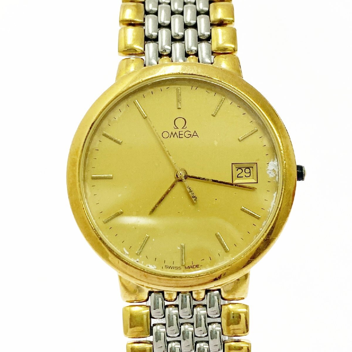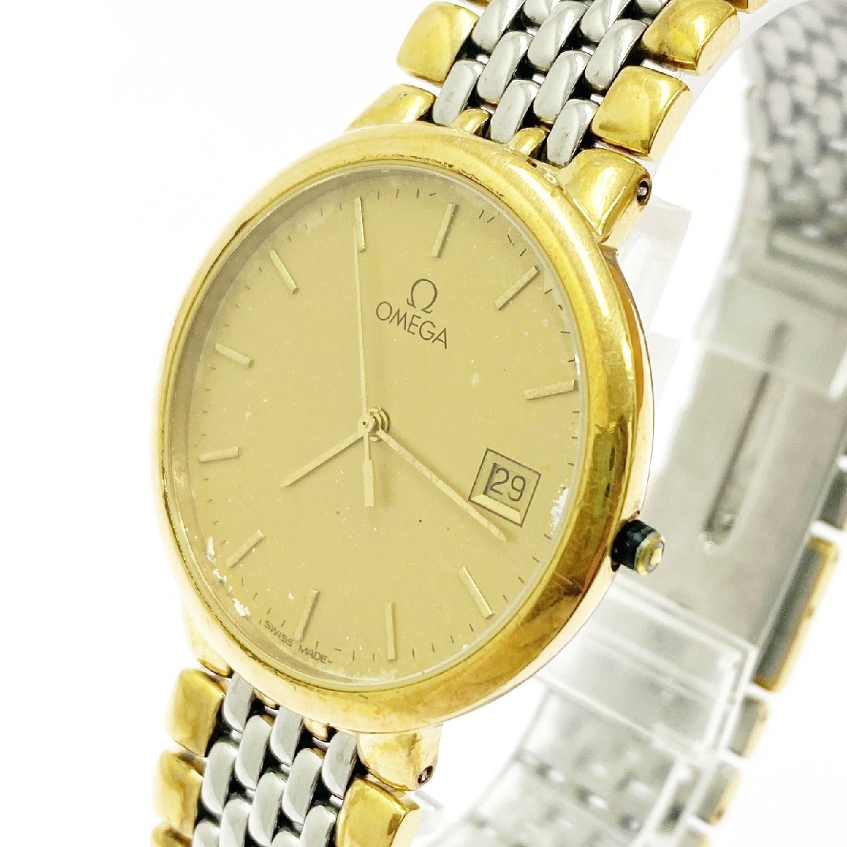 【1円スタート】OMEGA オメガ デビル ラウンド GP×SS ゴールド文字盤 クオーツ ボーイズ腕時計 ジャンク R57-1