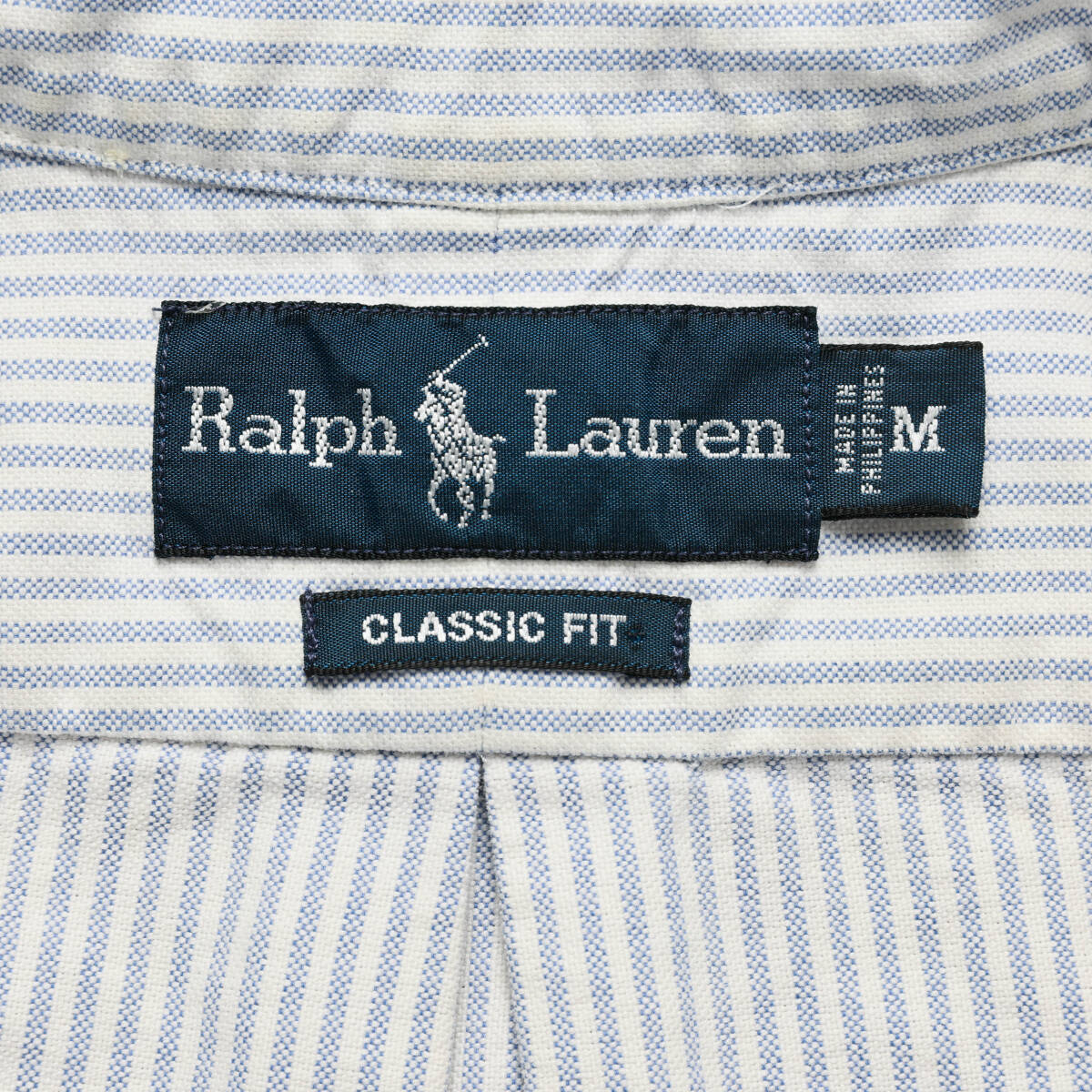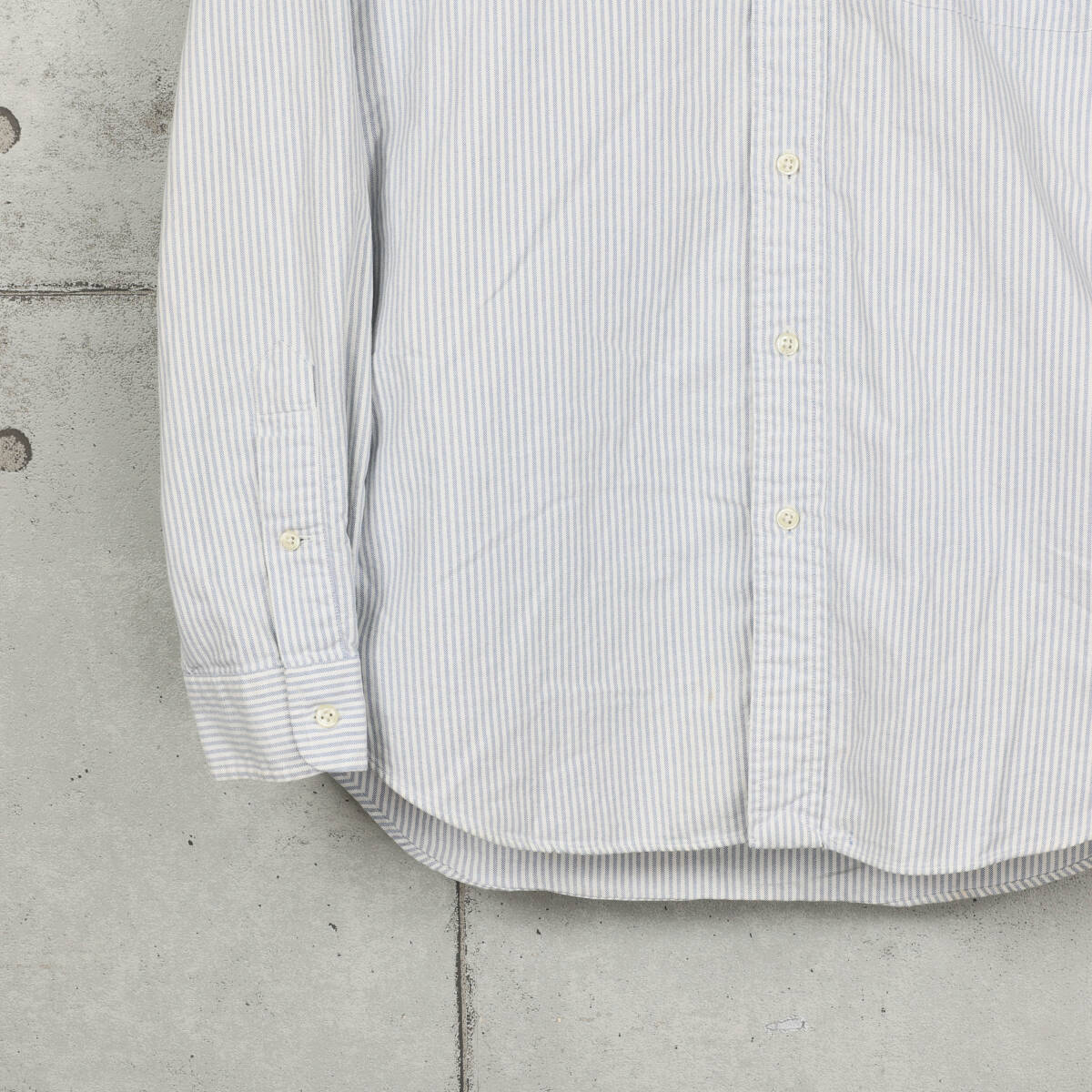 【ブランド】 Polo Ralph Lauren / ポロラルフローレン 【アイテム】 CLASSIC FIT オックスフォード ストライプ ボタンダウンシャツ 【商品説明】 アメリカで購入しました、ラルフローレンのオックスフォード素材が使用されたストライプ柄のボタンダウンシャツになります。 【カラー】 ブルー×ホワイト 【コンディション】 使用に伴う色落ちや擦れなどがあります。 【サイズ】 サイズ:M 身幅:60cm 肩幅:47cm 着丈:75cm 袖丈:63cm |