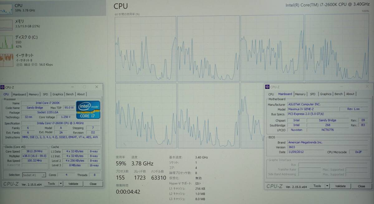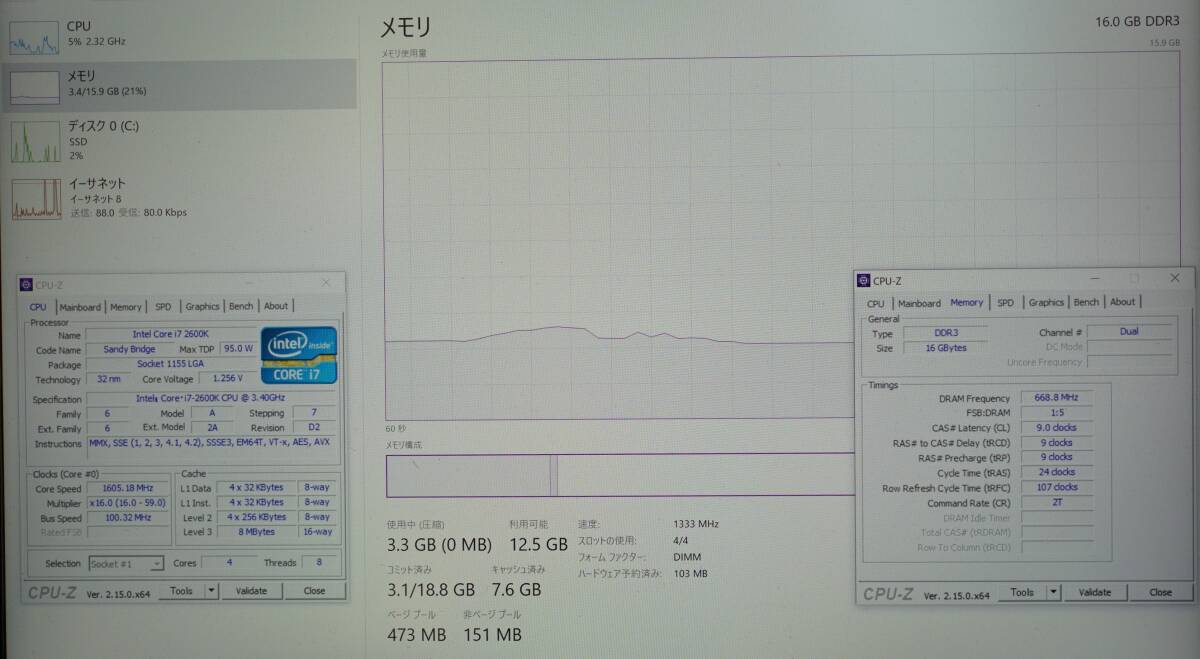 メモリはマザーボードのすべてのスロットを埋めた状態です。