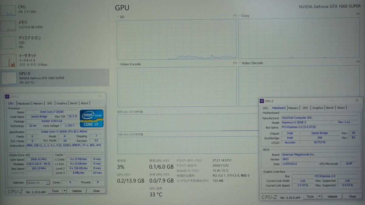 また別途GPUを取り付けた状態でも起動確認をしています。