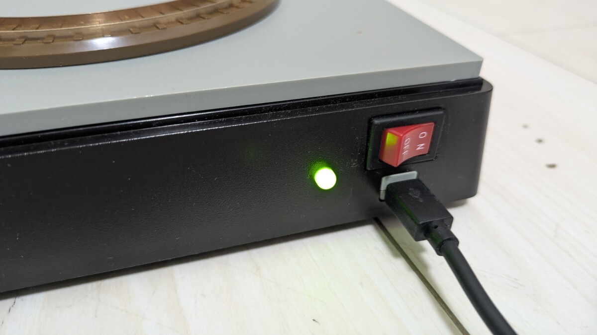 手持ちのUSBケーブルを接続して通電確認のみとなります。